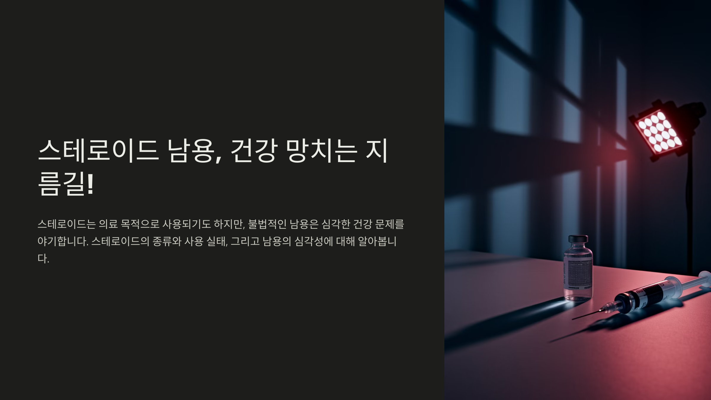 내가 생각했을 때, 스테로이드는 단기적인 성과를 위해 너무 큰 대가를 치르게 만드는 위험한 선택이에요. 올바른 운동과 영양 섭취 없이 스테로이드에 의존하는 것은 결국 건강을 망치는 지름길이 될 수밖에 없어요. 지금부터 스테로이드 남용이 우리 몸에 어떤 영향을 미치는지 자세히 알아볼게요! 🚨