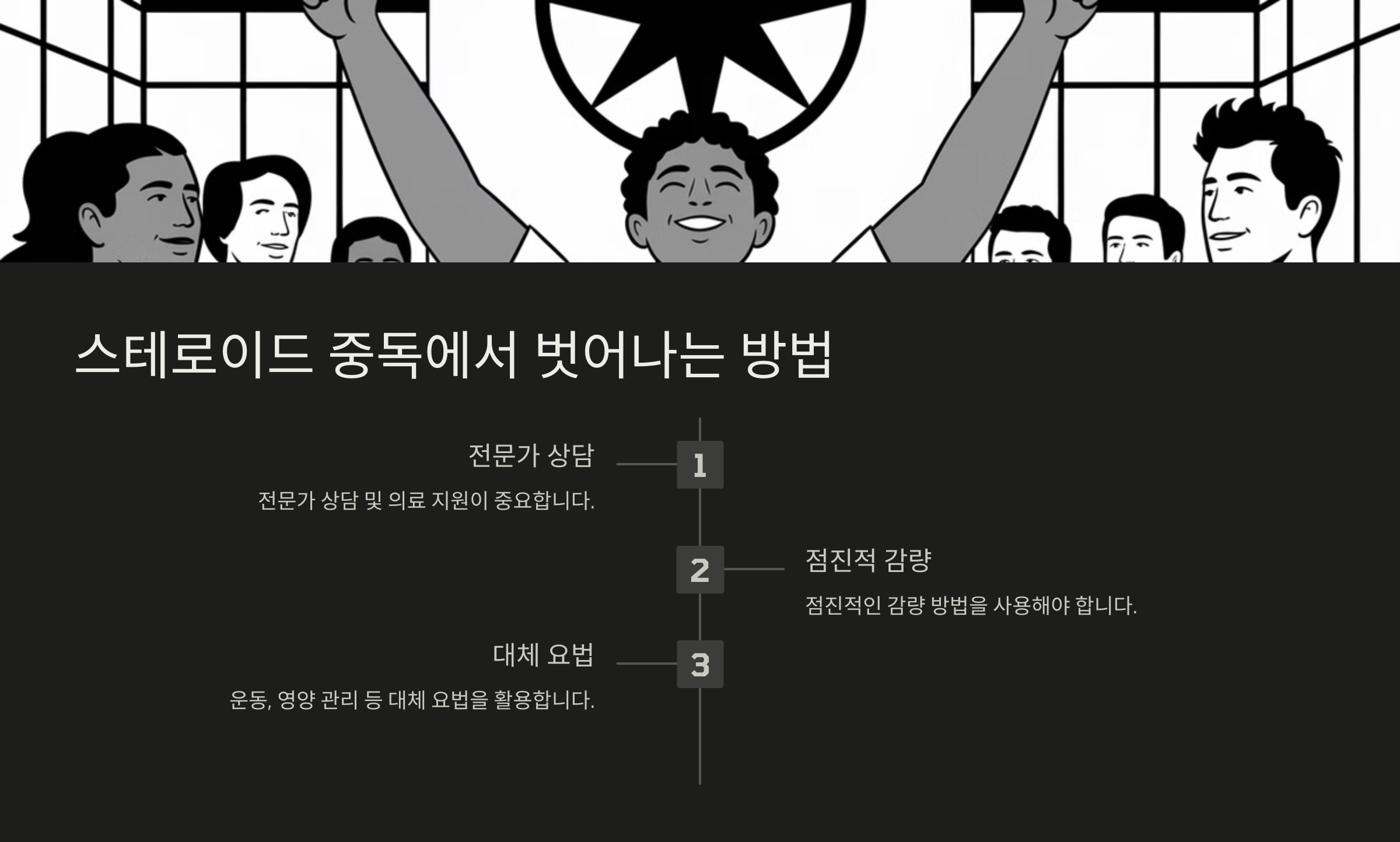 🚀 다음 섹션에서 "스테로이드 중독에서 벗어나는 방법"에 대해 이어서 알아볼게요!