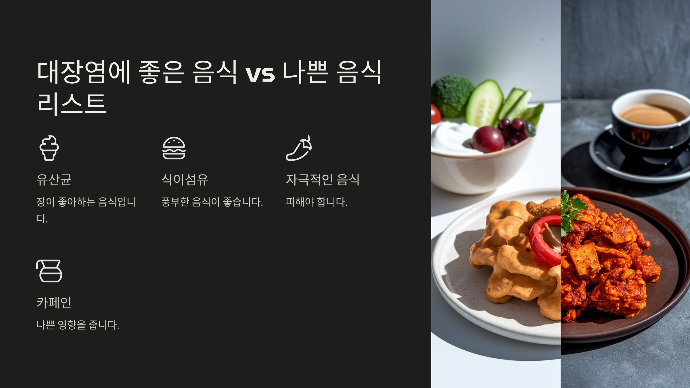 대장염에 좋은 음식 vs 나쁜 음식 리스트 🍽️
