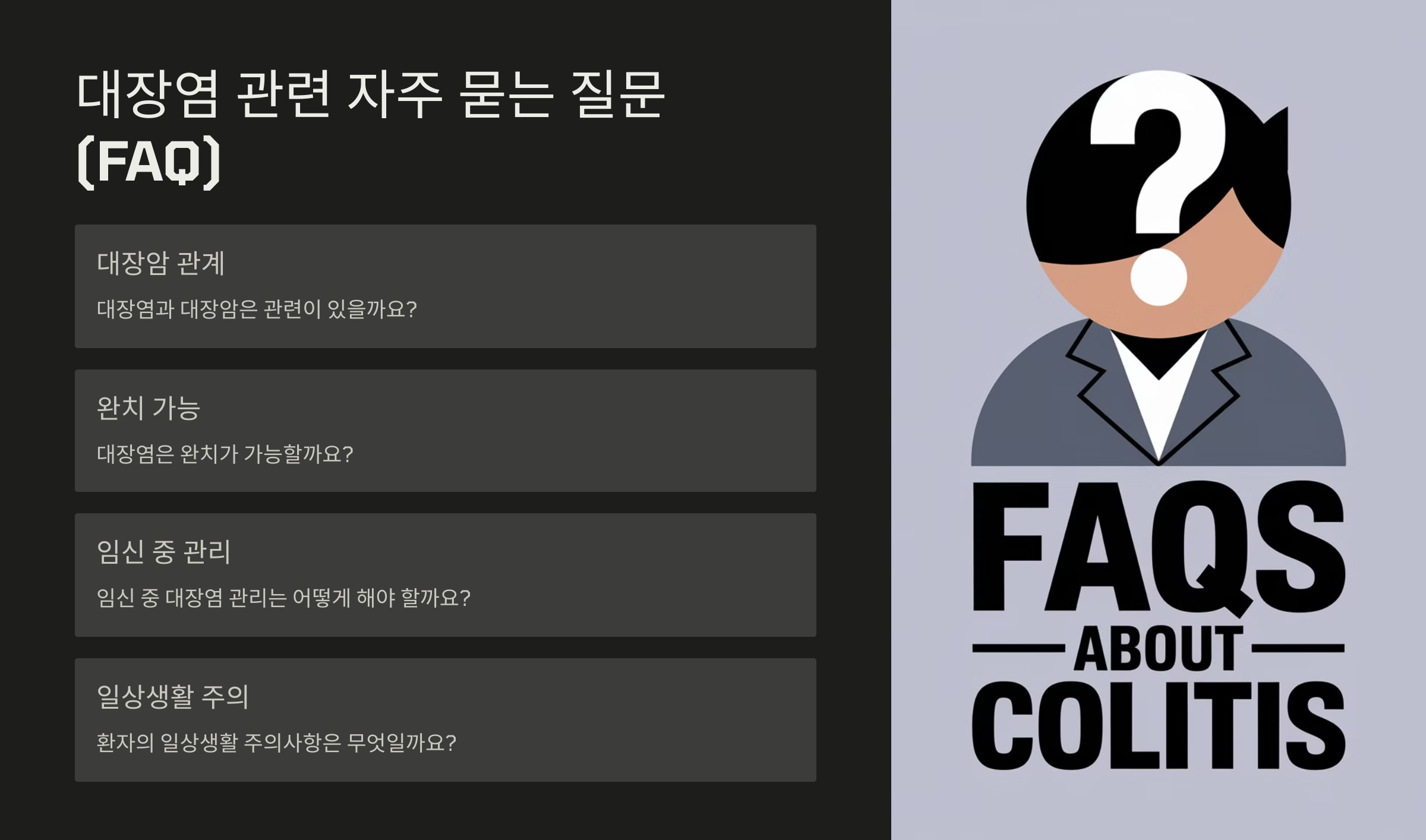 대장염 관련 자주 묻는 질문 (FAQ) ❓