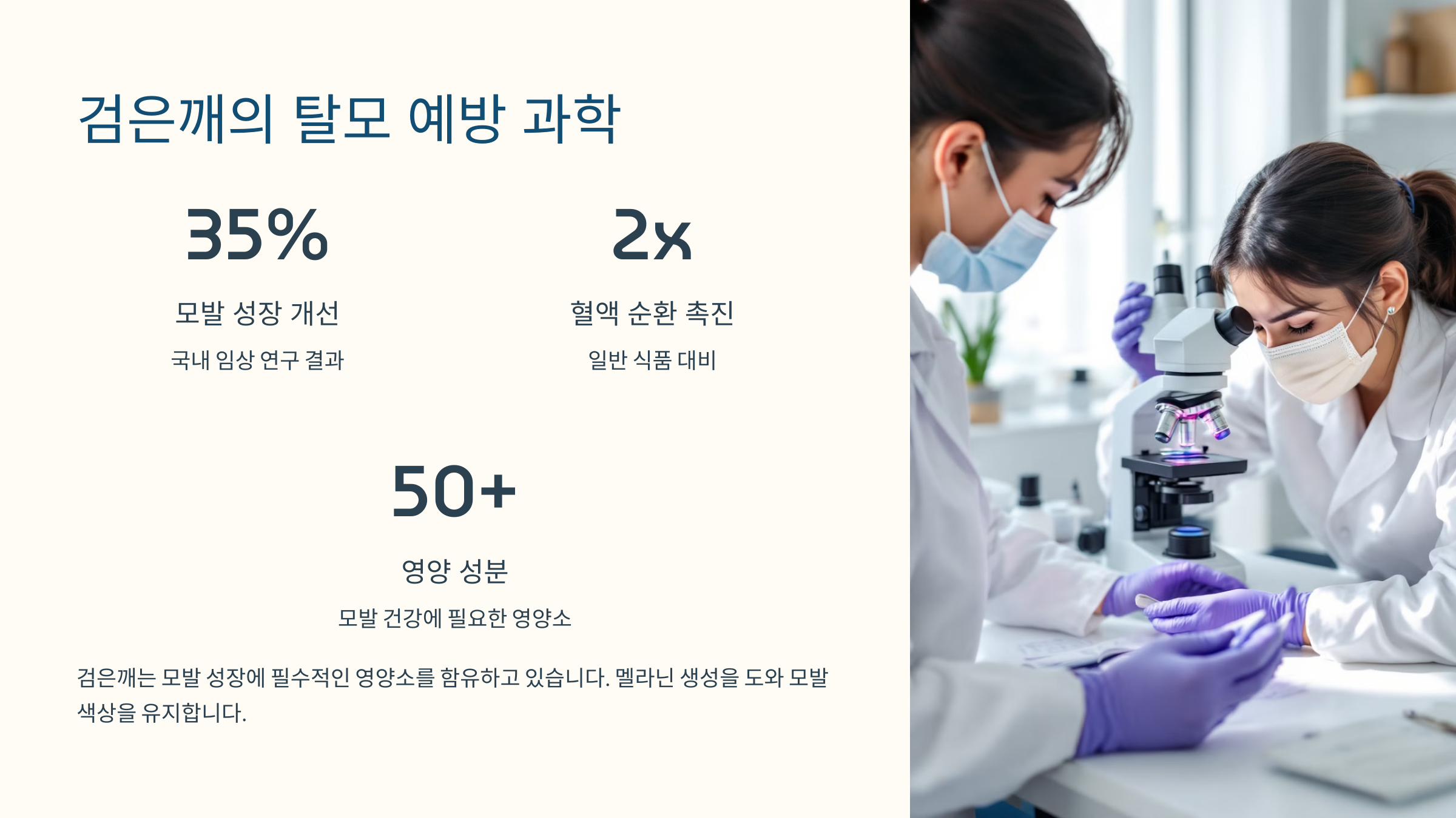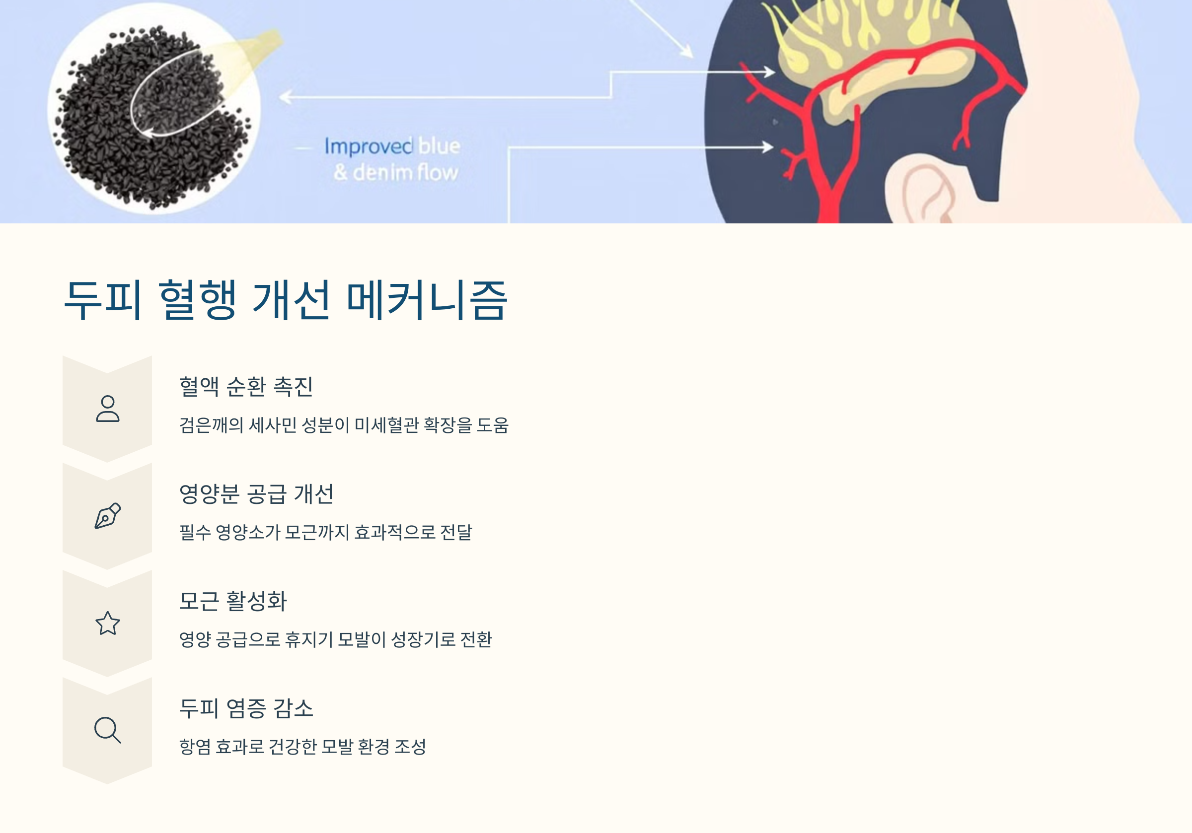 다음으로는 검은깨가 어떻게 두피의 혈류를 개선해서 모발에 긍정적인 영향을 주는지 이야기해볼게요! 💆‍♂️