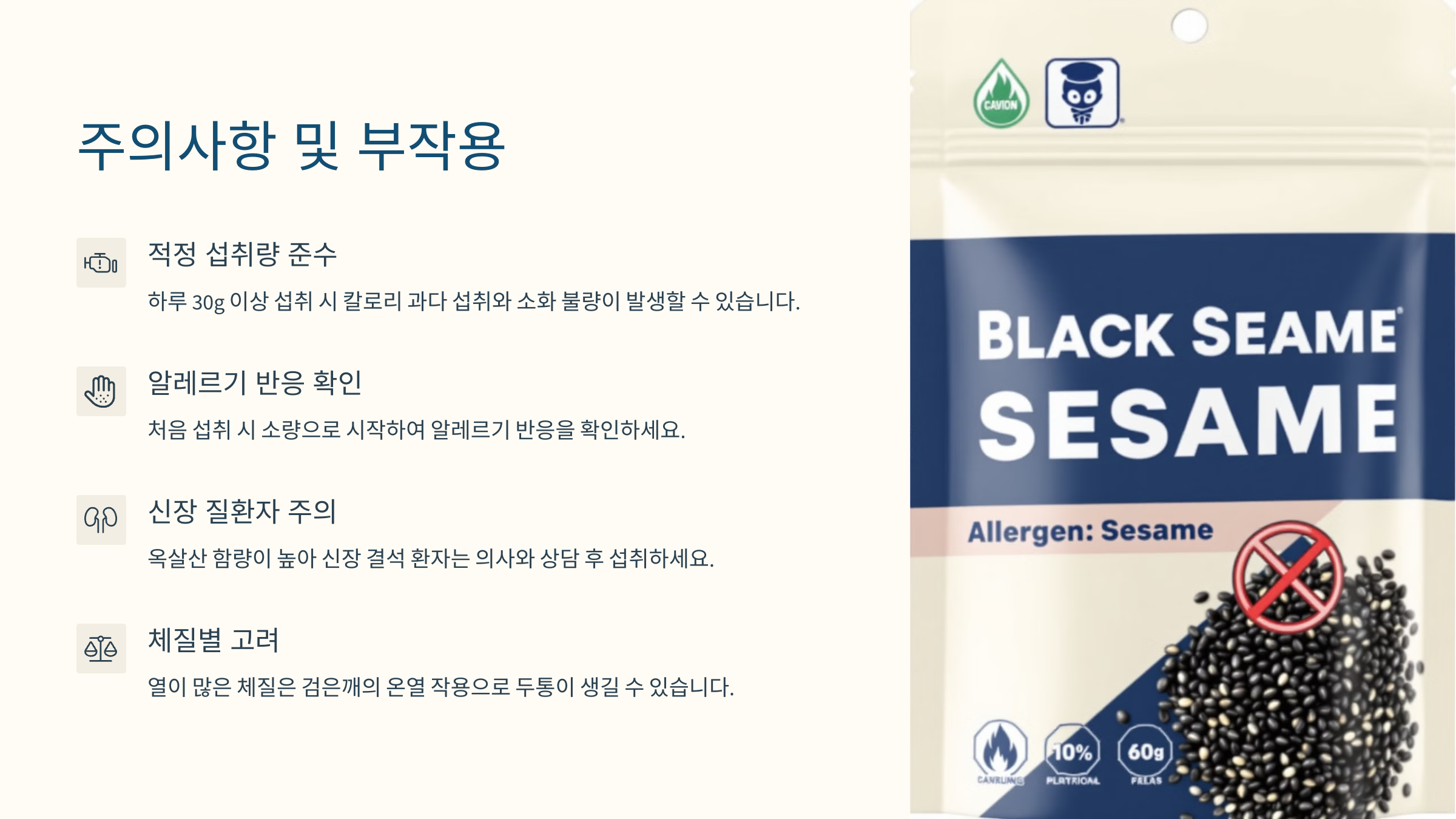 자, 이제 검은깨를 섭취하거나 바를 때 주의해야 할 점들도 함께 알아두는 게 좋겠죠? 🧠
