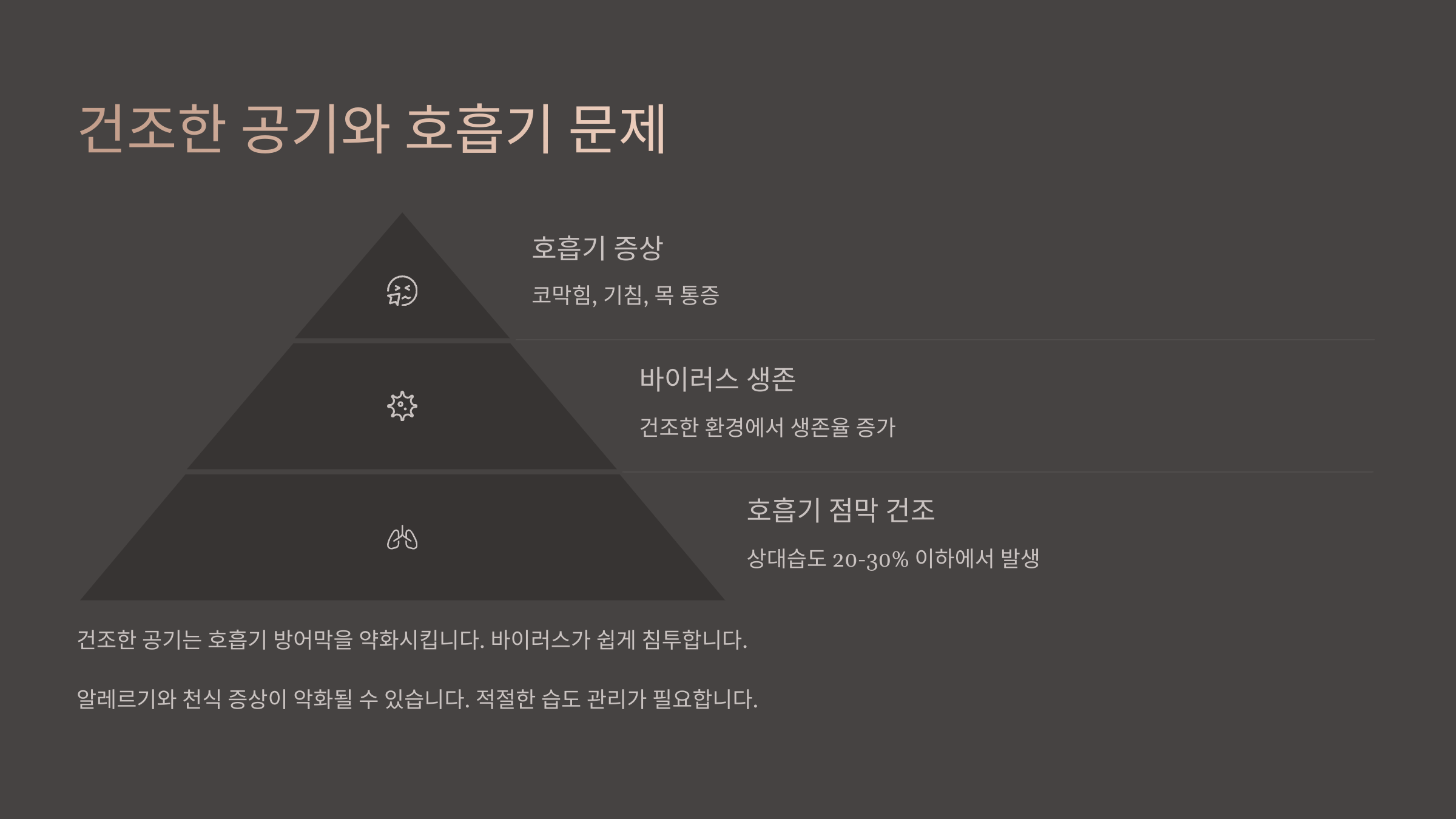겨울이 되면 실내 습도는 자연스럽게 떨어지게 돼요. 특히 난방을 계속하면 실내 공기는 더욱 건조해지죠. 이때 가장 먼저 영향을 받는 게 바로 우리의 호흡기예요. 코와 목의 점막이 마르면 바이러스나 세균에 대한 방어력이 뚝 떨어지거든요.
