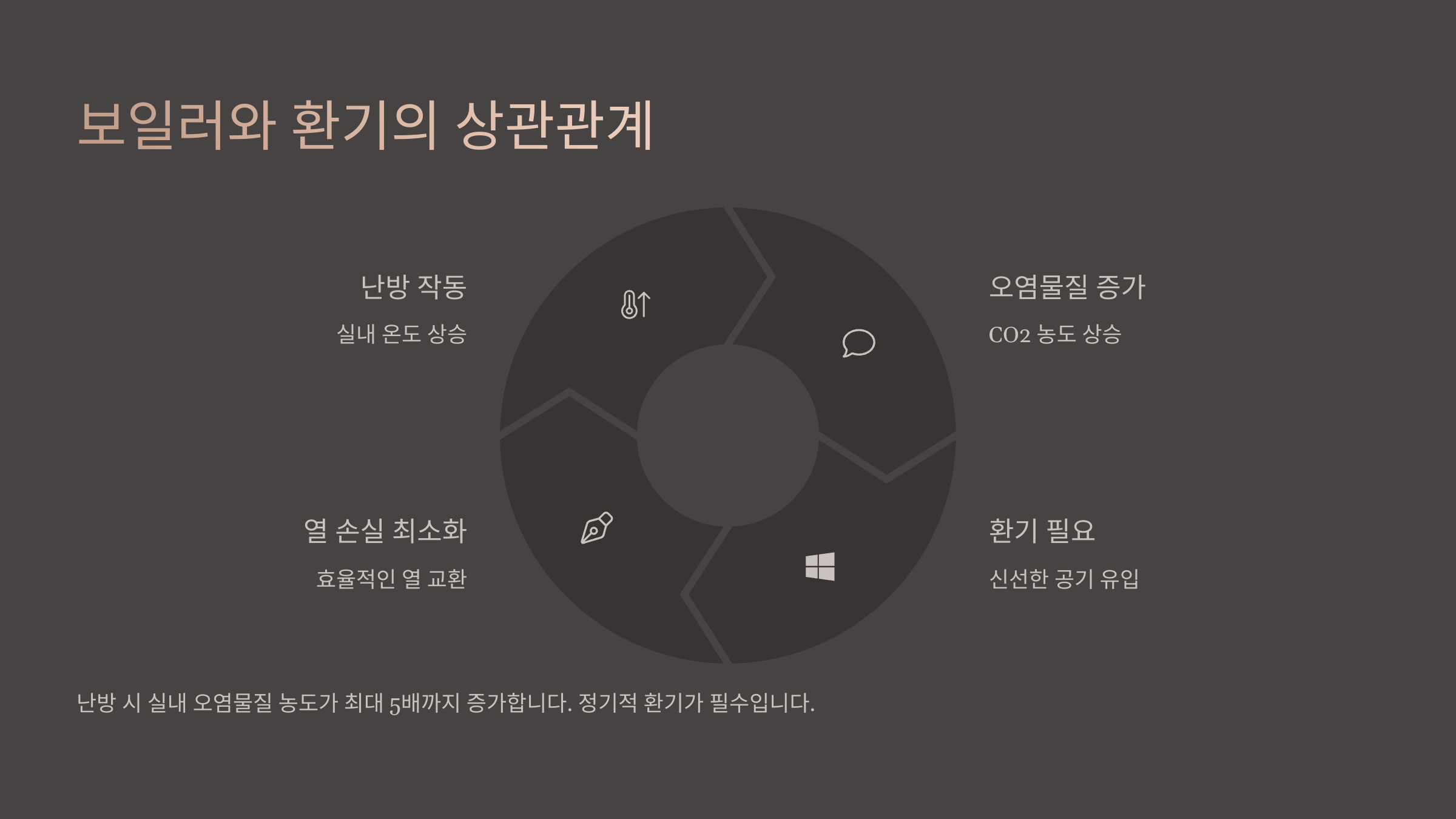 보일러는 겨울철 실내 온도를 따뜻하게 유지해주는 필수 가전이지만, 환기와의 궁합을 고려하지 않으면 공기질이 나빠질 수 있어요. 특히 가스보일러의 경우 산소를 연소시켜 열을 내는 방식이기 때문에, 실내 산소 농도를 낮추고 이산화탄소를 높이는 원인이 되기도 해요.