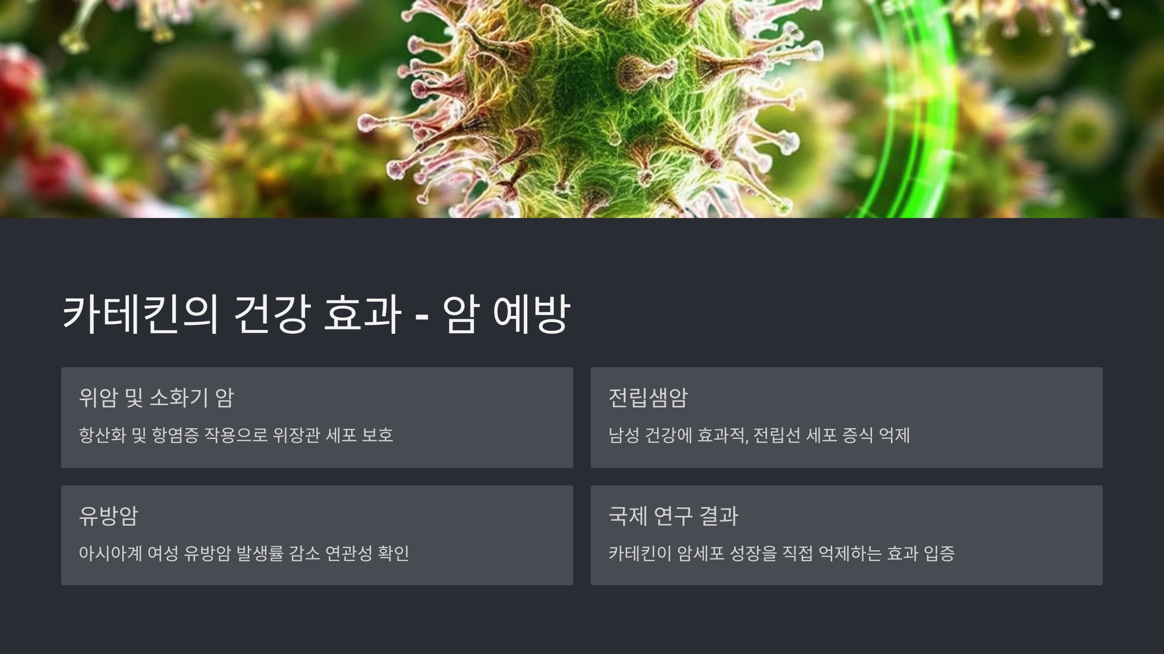 이렇게 다양한 기능의 카테킨이 한 잔의 녹차 안에 들어 있다는 사실, 정말 놀랍지 않나요? 그래서 하루 한 잔의 녹차는 건강한 삶을 위한 작지만 강력한 실천이라고 할 수 있어요.🍵