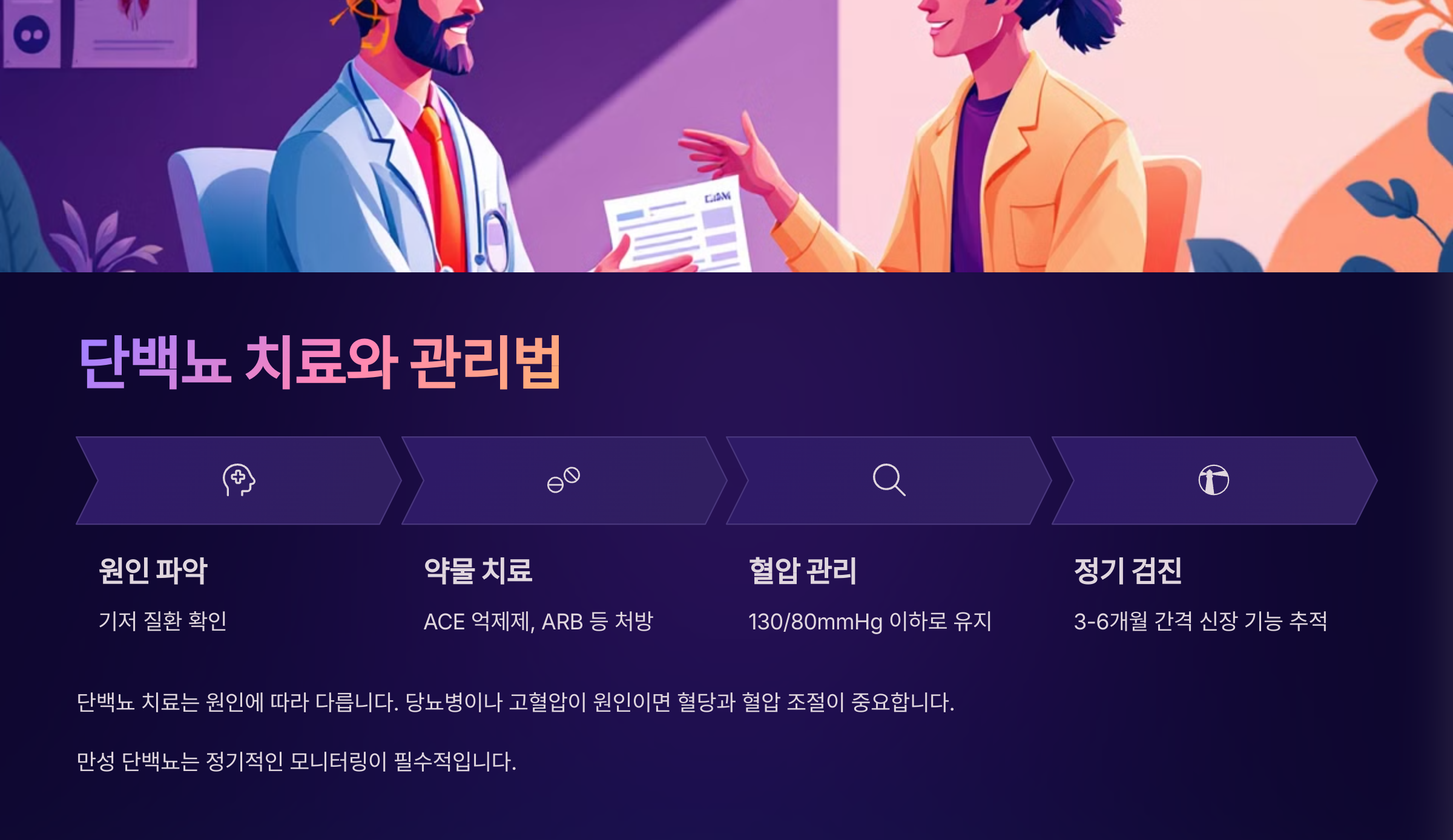 원인을 잘 파악하고 그에 맞는 접근을 해야 단백뇨가 반복되는 걸 막을 수 있어요. 병의 원인을 모르고 증상만 치료하면 도루묵이니까요. 😊
