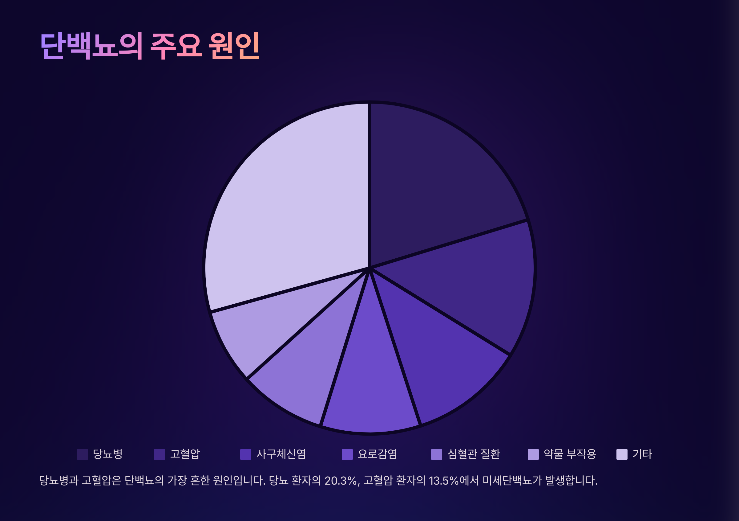 그 외에도 자가면역질환(루푸스), 유전적 신장질환, 심부전 등도 원인이 될 수 있어요. 특히 가족력이 있다면 조기에 체크하는 것이 중요하고, 건강한 사람도 나이 들어가며 단백뇨가 생길 수 있다는 점도 알아두면 좋아요.