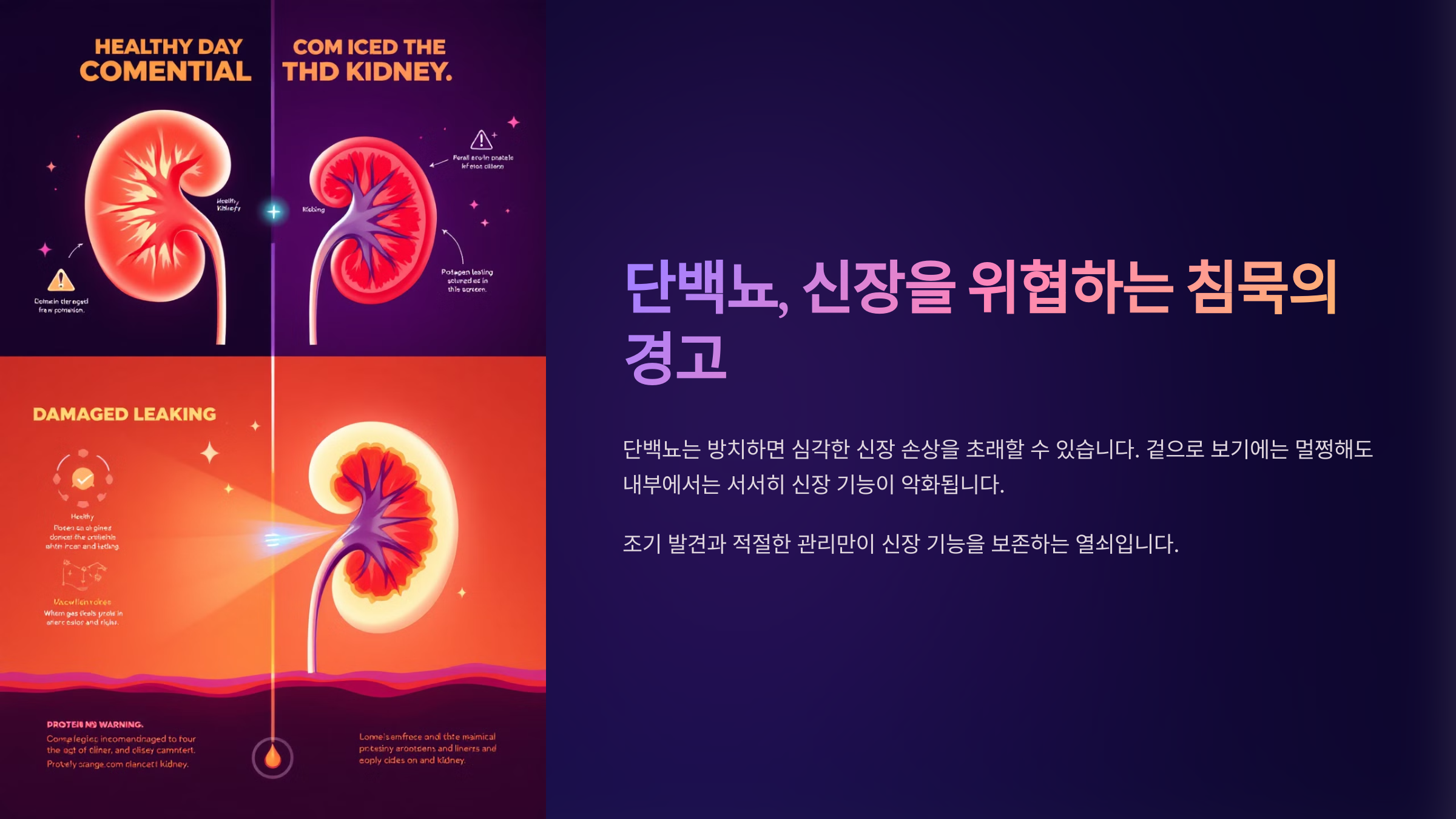 신장은 침묵의 장기라고 불릴 만큼 증상이 늦게 나타나요. 하지만 한 번 손상되면 회복이 어려운 만큼, 평소의 습관이 가장 강력한 약이에요. 매일의 습관이 단백뇨를 막는 진짜 열쇠랍니다 🗝️
