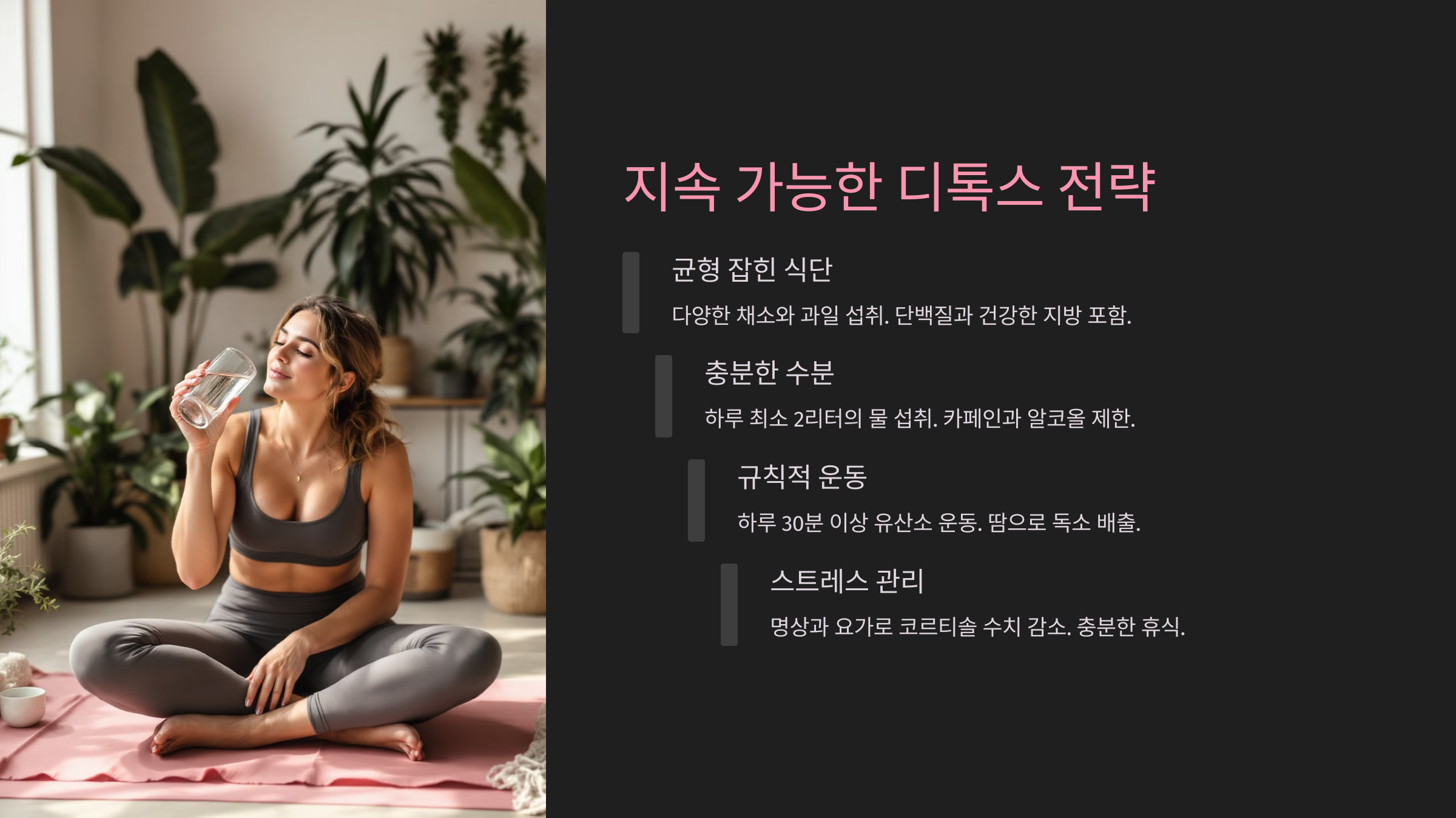 다음 파트에서는 진짜 오래갈 수 있는 디톡스 전략, ‘지속 가능한 디톡스’에 대해 알려드릴게요. 더 이상 작심삼일은 그만! 🧘‍♀️