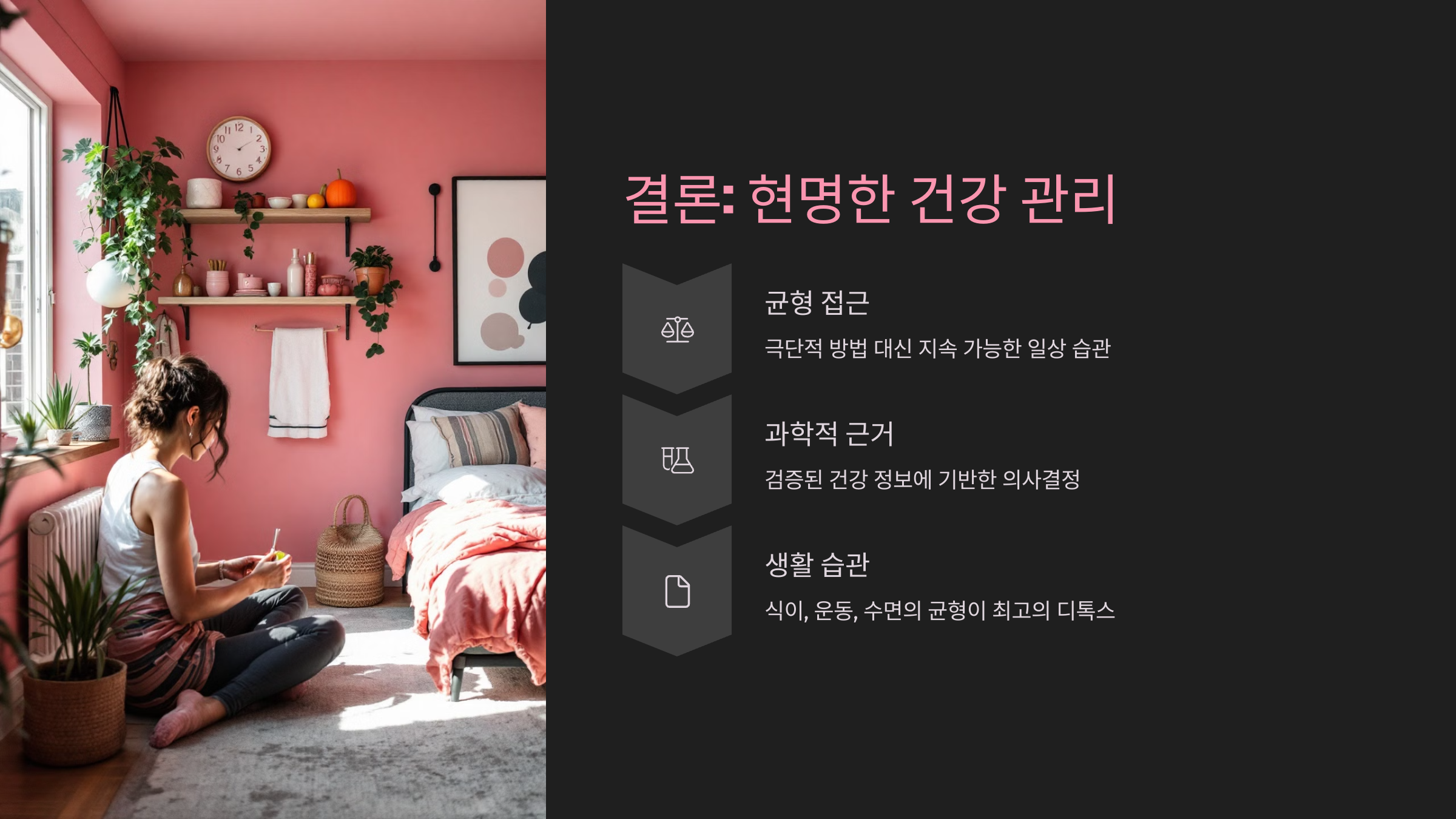 내가 생각했을 때, 디톡스는 단순한 '단식'이나 '유행 다이어트'가 아니라 몸과 마음을 정돈하는 하나의 과정이라고 봐요. 그리고 그 과정엔 꾸준함과 균형 잡힌 습관이 함께 해야 진짜 효과를 볼 수 있어요.