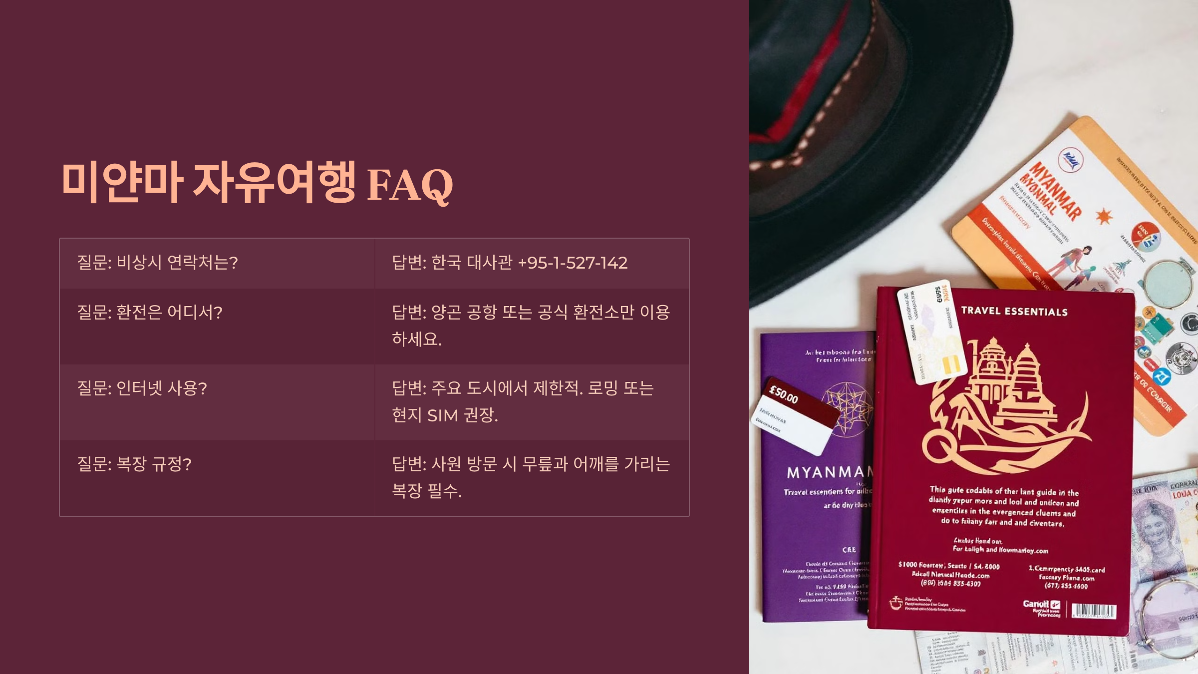 미얀마 자유여행 관련 자주 묻는 질문 (FAQ)