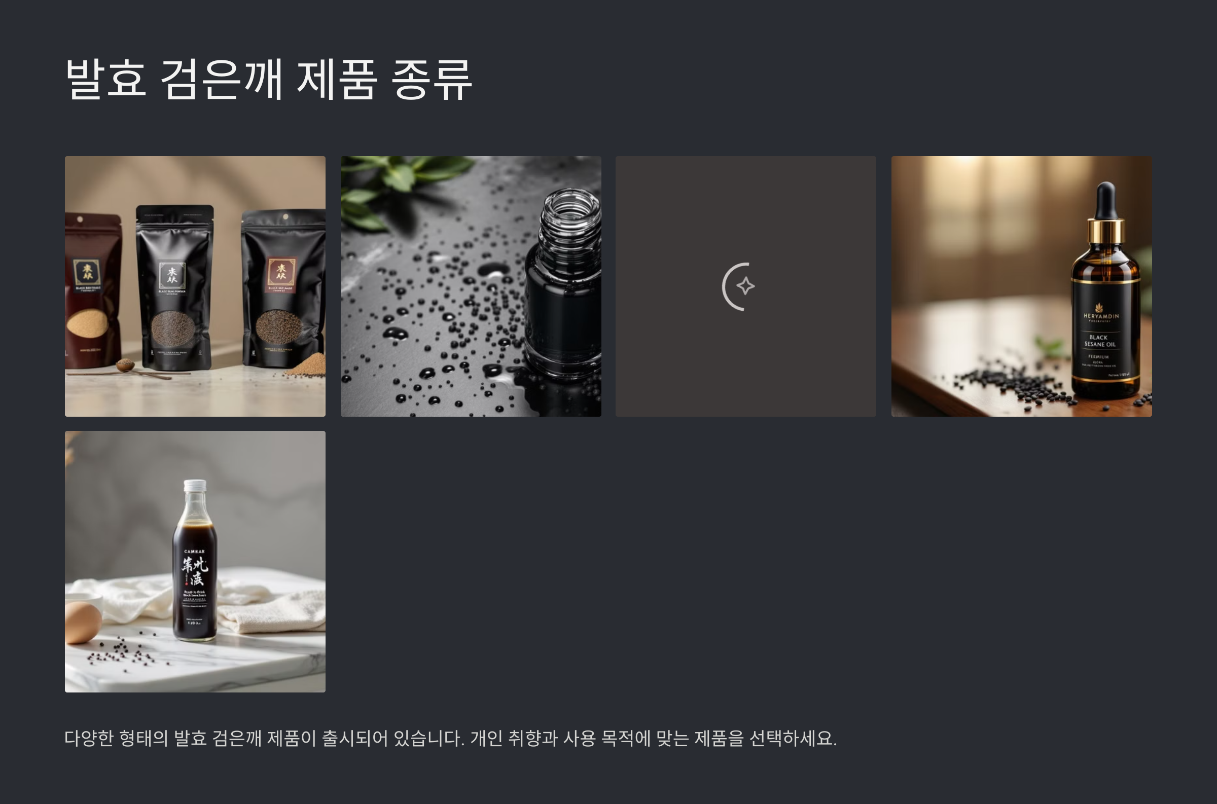 다음 섹션에서는 어떤 제품들이 있는지 알아볼게요. 발효 검은깨가 어떻게 상품화되어 있는지 궁금하지 않으세요? 그럼 아래에서 이어가 볼게요!👇
