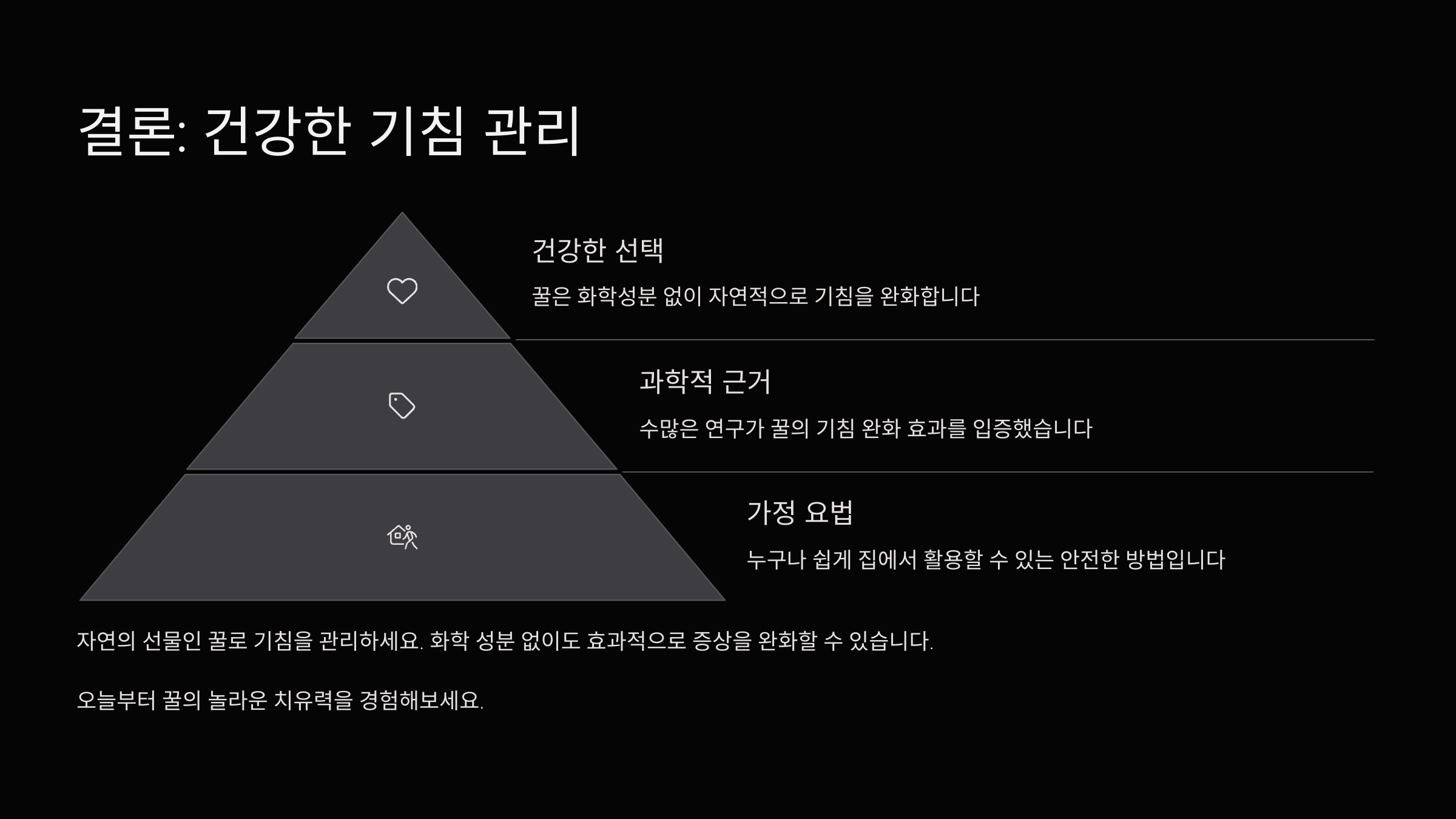 꿀은 오랜 세월 동안 자연치유 성분으로 사랑받아 온 달콤한 선물이에요. 특히 기침 완화, 목 통증 진정, 점액 제거 등 호흡기 관련 문제에 아주 잘 맞는 성분이 많답니다. 세계보건기구(WHO)에서도 천연 진해제로 추천할 정도로 과학적으로도 인정받은 꿀의 효과는 무시할 수 없어요.