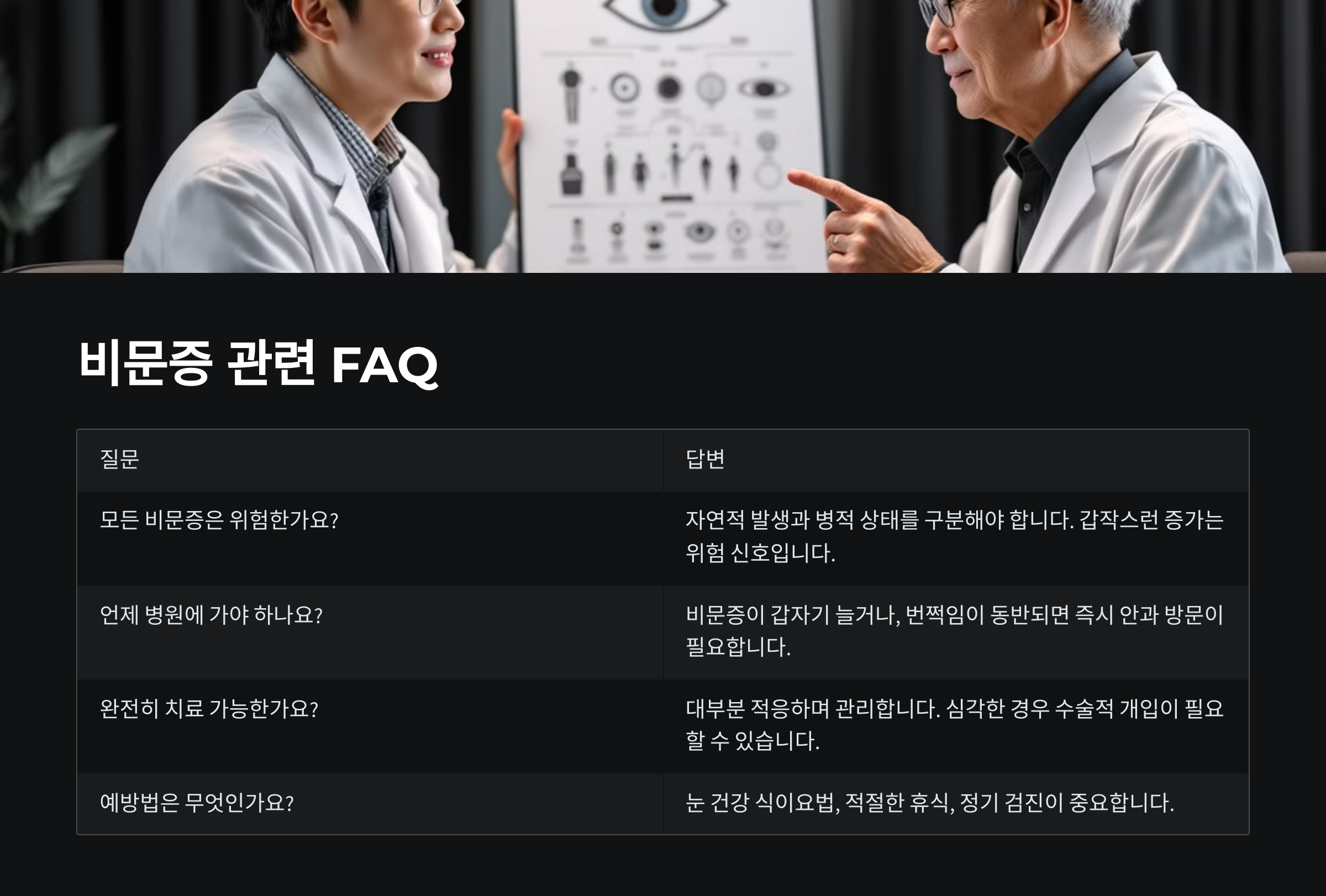 많은 분들이 "언젠간 사라지겠지"라는 생각으로 그냥 두는데, 비문증의 변화는 곧 눈 내부에서 무언가 일어나고 있다는 중요한 힌트일 수 있어요. 절대 무시하지 말고 검진 받아야 해요!