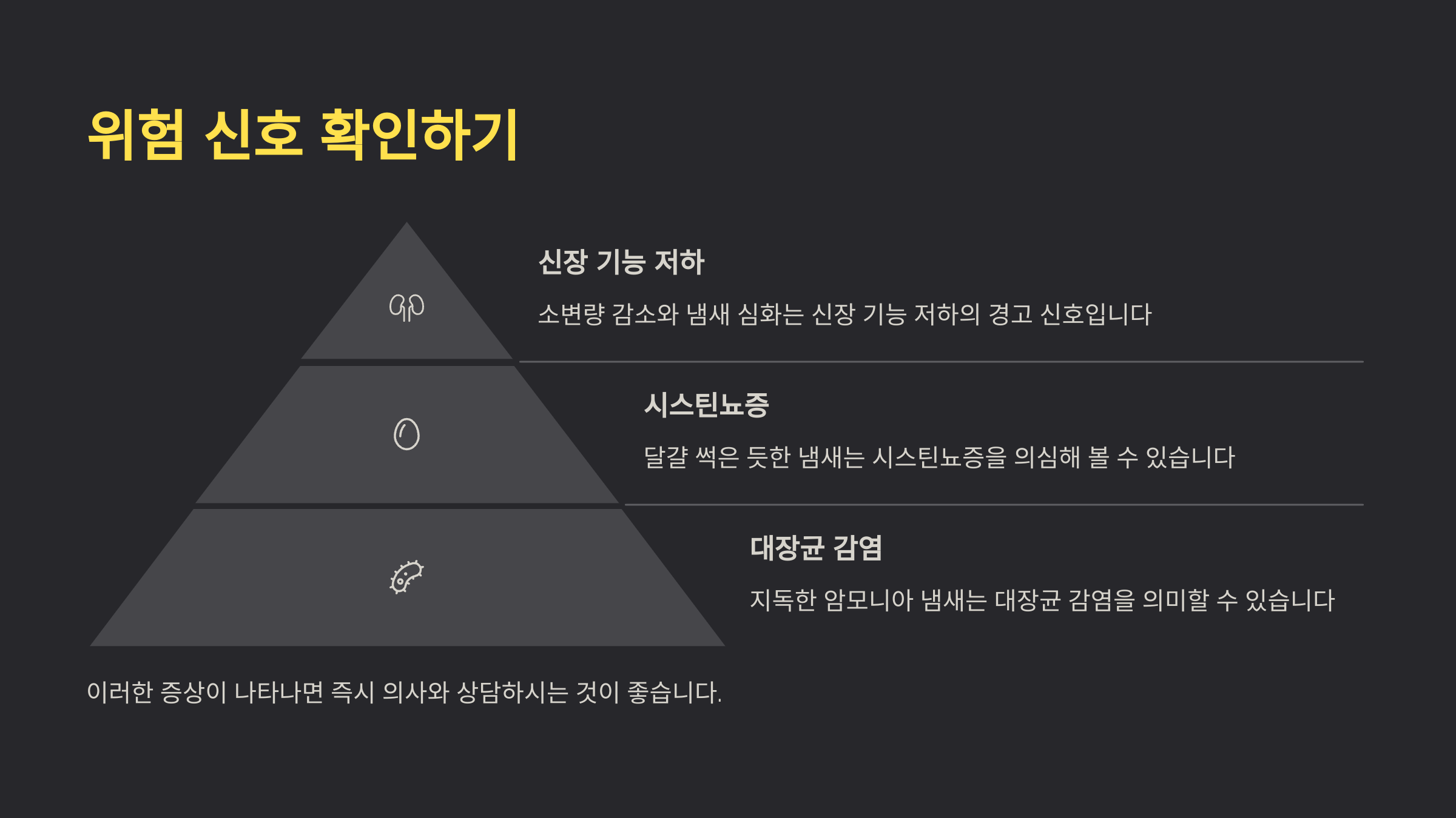 Q1. 소변 냄새가 심한데 꼭 병원에 가야 하나요?