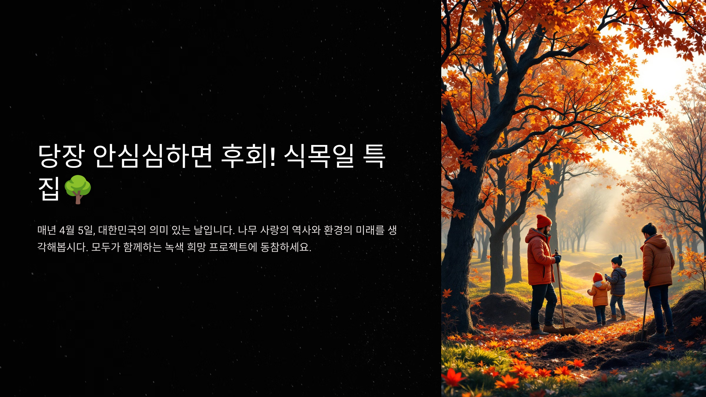 환경 보호라는 거창한 말 대신, 나무 한 그루 심기부터 실천해보는 건 어때요? 식목일은 그런 의미에서 가장 쉬우면서도 가장 효과적인 환경 운동의 시작점이 될 수 있어요. 작지만 확실한 변화, 우리 손에 달려 있어요 🌱