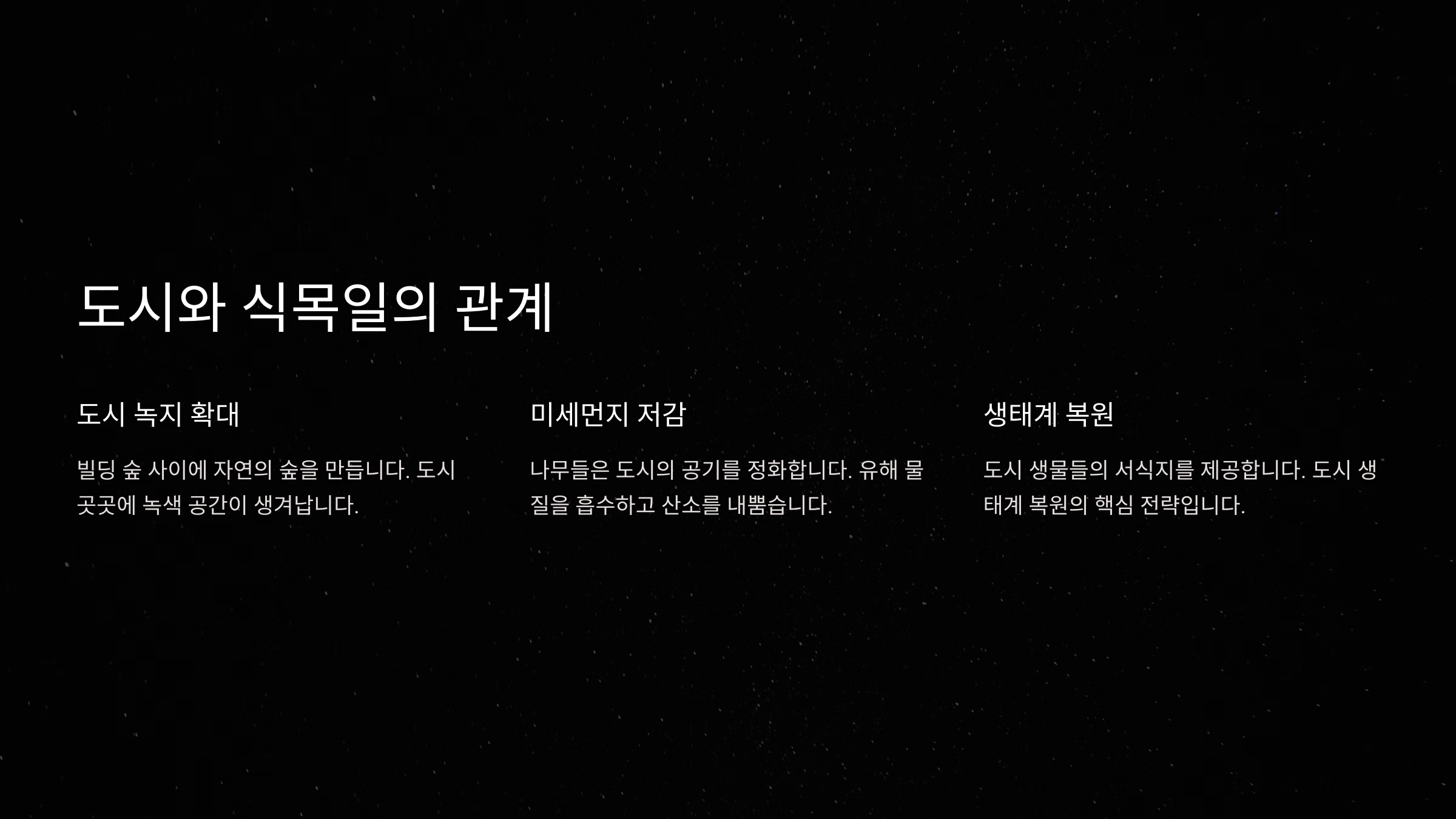 또한 나무는 생물 다양성 보존에도 중요한 역할을 해요. 다양한 생물들의 서식지를 제공하고, 생태계 균형을 유지하죠. 숲이 사라지면 동물들이 살 곳도 없어지고, 토양도 황폐화되어 결국 인간에게 피해가 돌아오게 돼요.