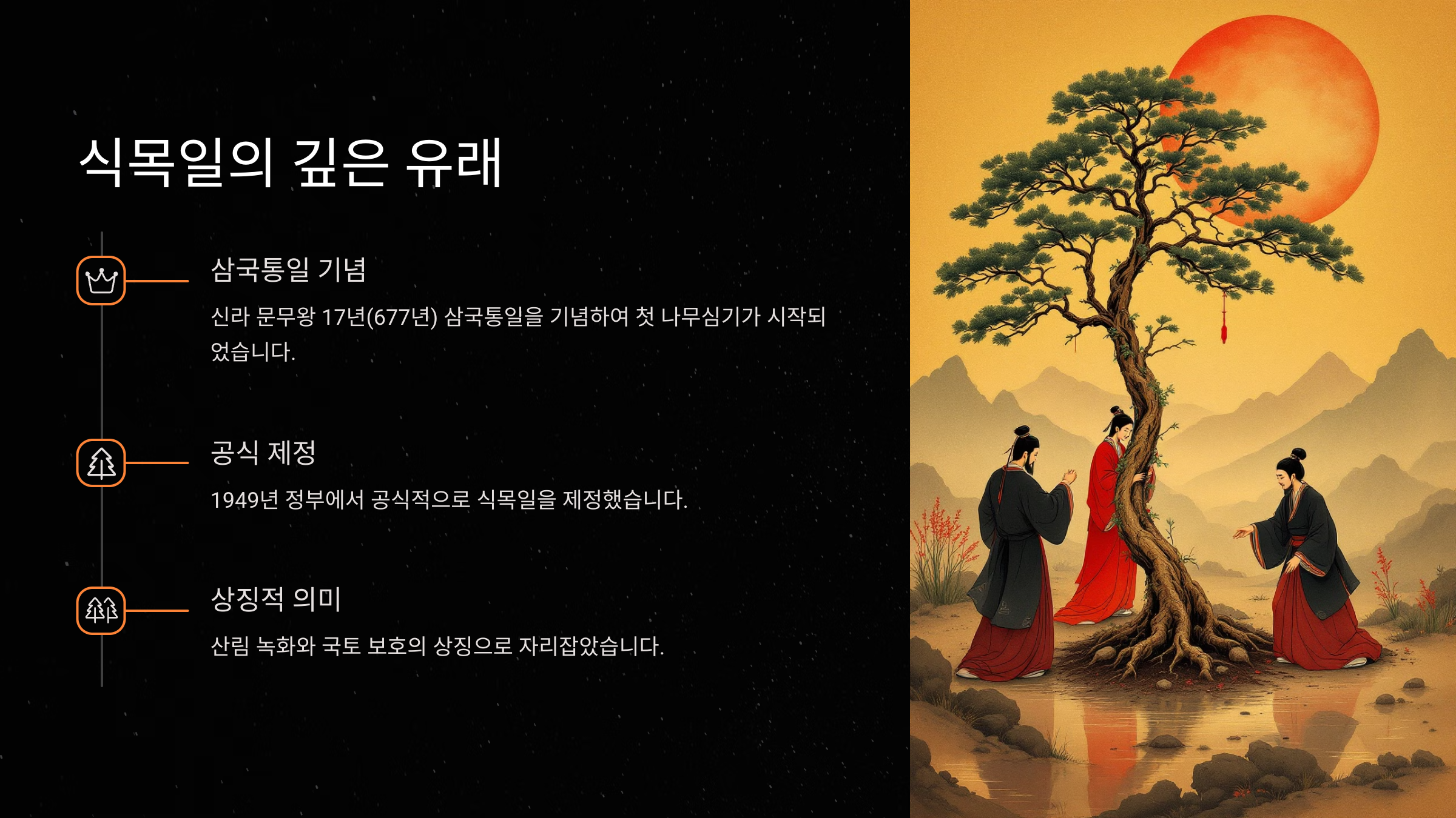 당시 정부는 해방 이후 황폐해진 산림을 복구하고, 국민의식 속에 녹화사업의 필요성을 심기 위해 식목일을 만들었답니다. 1960~70년대에는 실제로 많은 학교와 단체에서 나무를 심는 행사를 대대적으로 열었어요. 특히 박정희 대통령 시절에는 국가 차원의 녹화 운동이 활발히 진행됐고, 그 결과 현재의 울창한 산림 기반이 마련됐죠 🌲