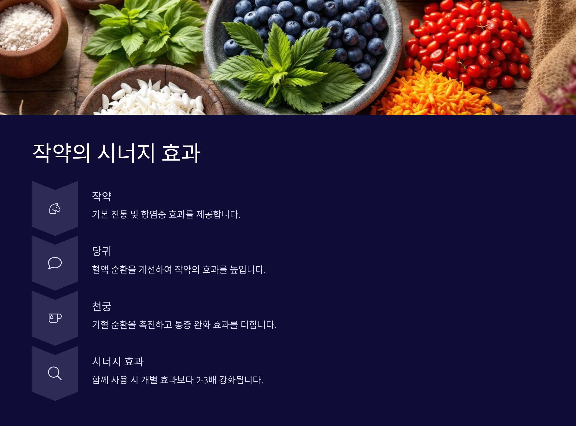 작약은 단순히 하나의 기능만 가진 약재가 아니에요. 다른 성분과 함께 할 때 각자의 장점이 극대화되는 특징이 있어서 복합 처방에서 진가를 발휘해요. 조합을 잘하면 약 효과도 2배, 만족도도 2배로 높아진답니다.💪