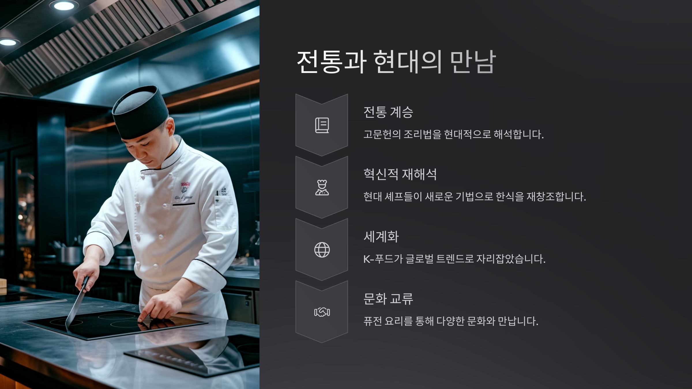 스크롤을 내리면 정말 새로운 한식의 세계가 열릴 거예요! 지금 바로 만나보세요.