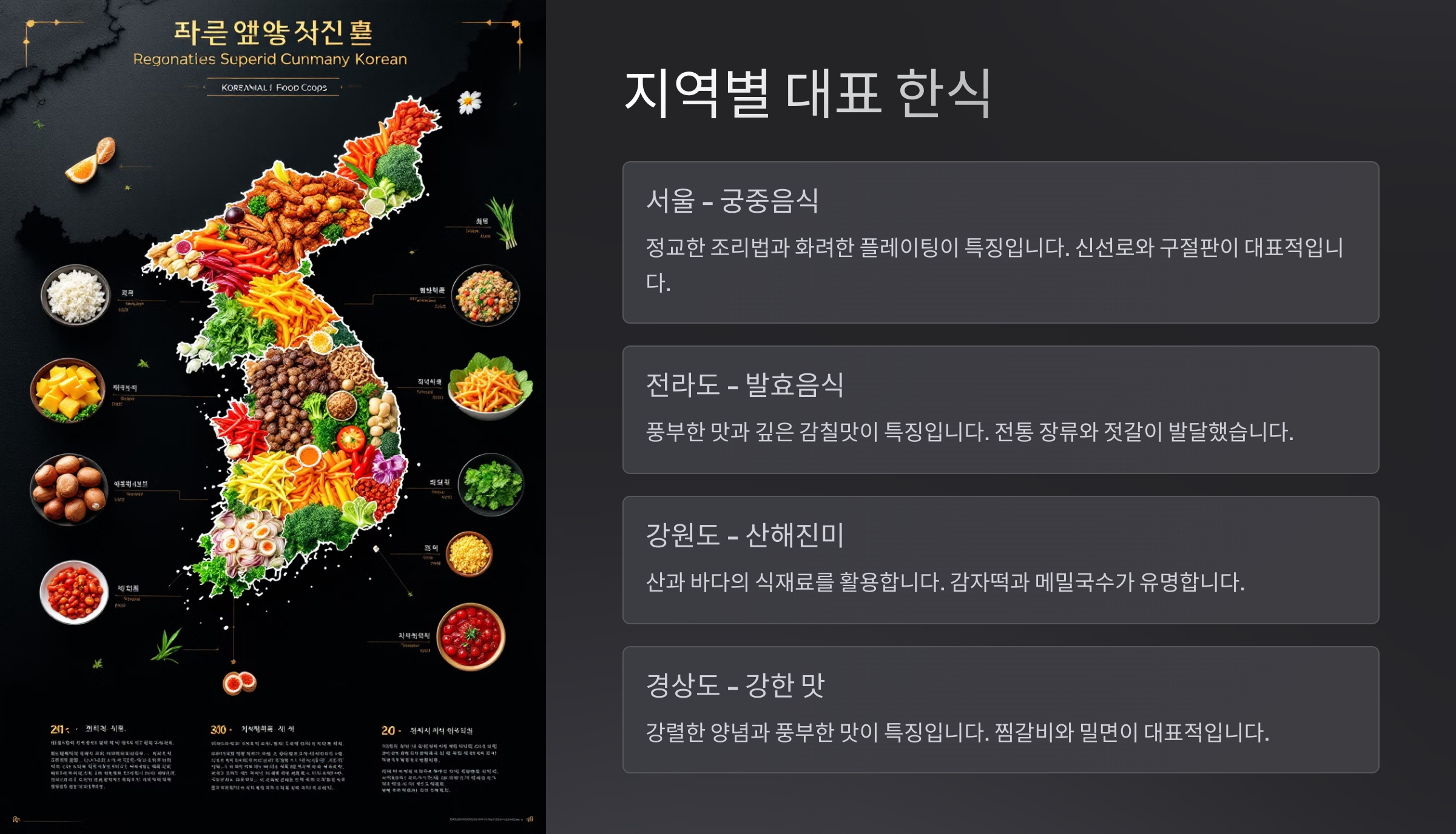 같은 나라에서도 지역마다 식문화가 이렇게 다르다는 건 정말 흥미롭지 않나요? 여행할 때 지역 한식을 찾아 먹는 재미도 쏠쏠하니까 꼭 기억해두세요! 🍜