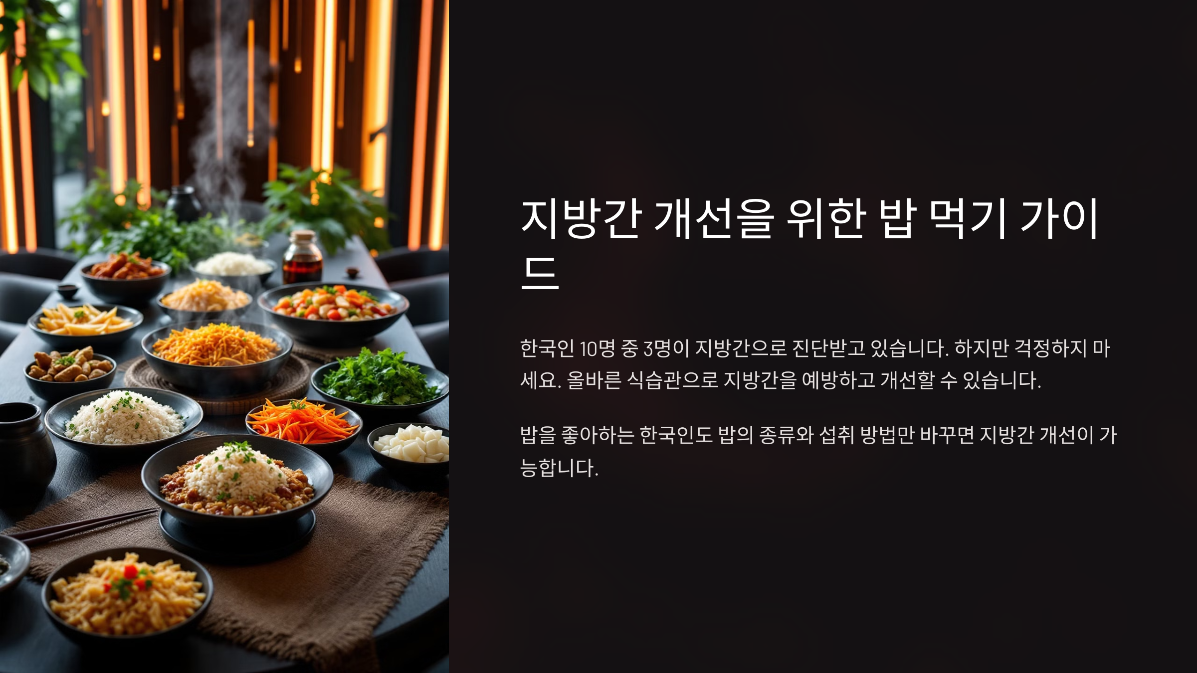 밥을 정말 좋아하는데 지방간이 걱정된다면? 좋은 소식이에요! 밥을 포기하지 않고도 충분히 지방간을 개선할 수 있는 방법들이 있어요. 핵심은 ‘밥을 어떻게 먹느냐’에 있답니다.