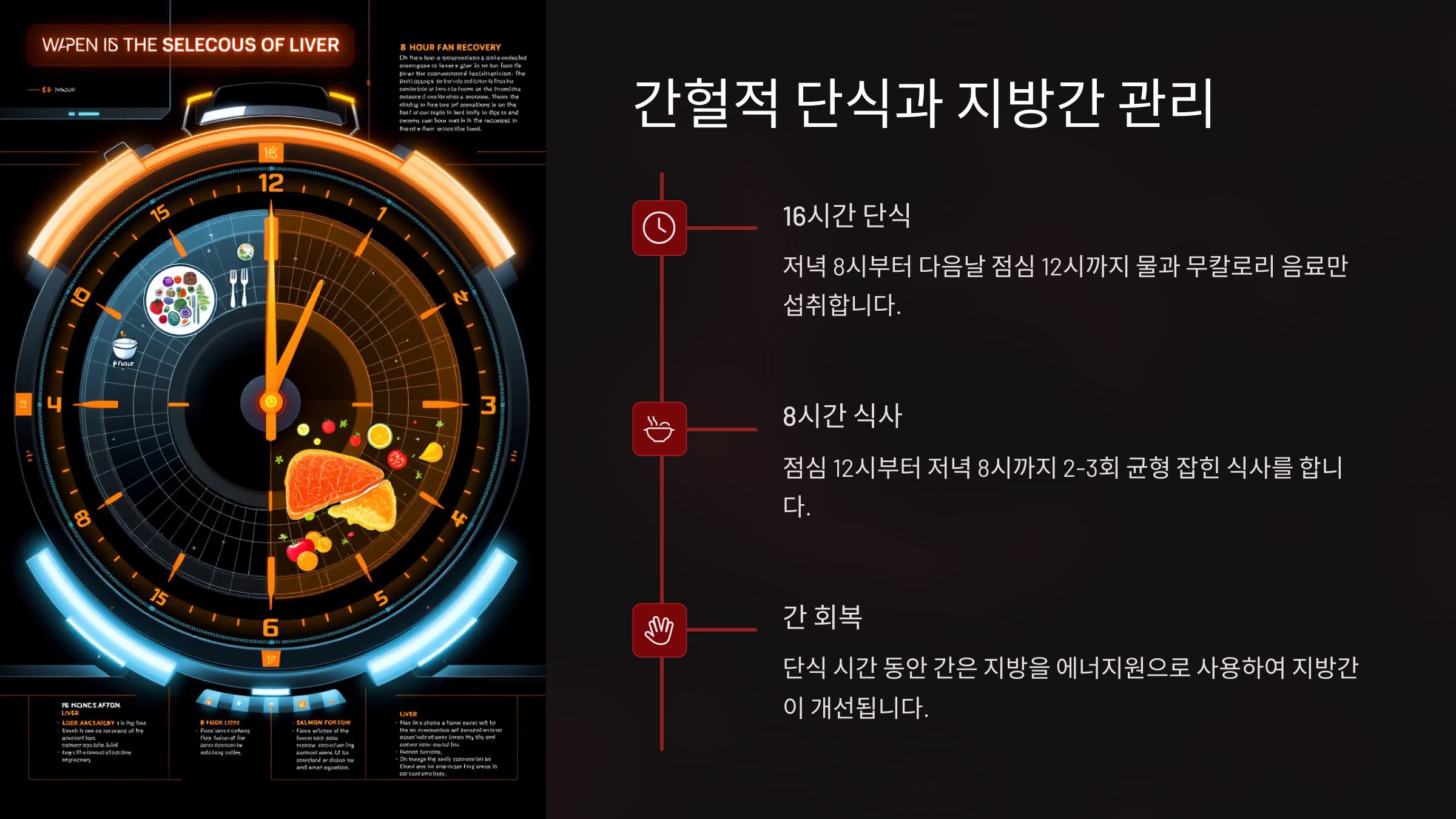 간헐적 단식은 단순한 ‘식사 시간 제한’이 아니라, 전체적인 생활 리듬과 식습관 개선을 위한 하나의 전략이에요. 잘 활용하면 지방간은 물론 체중과 혈당까지 안정화할 수 있어요. 👍