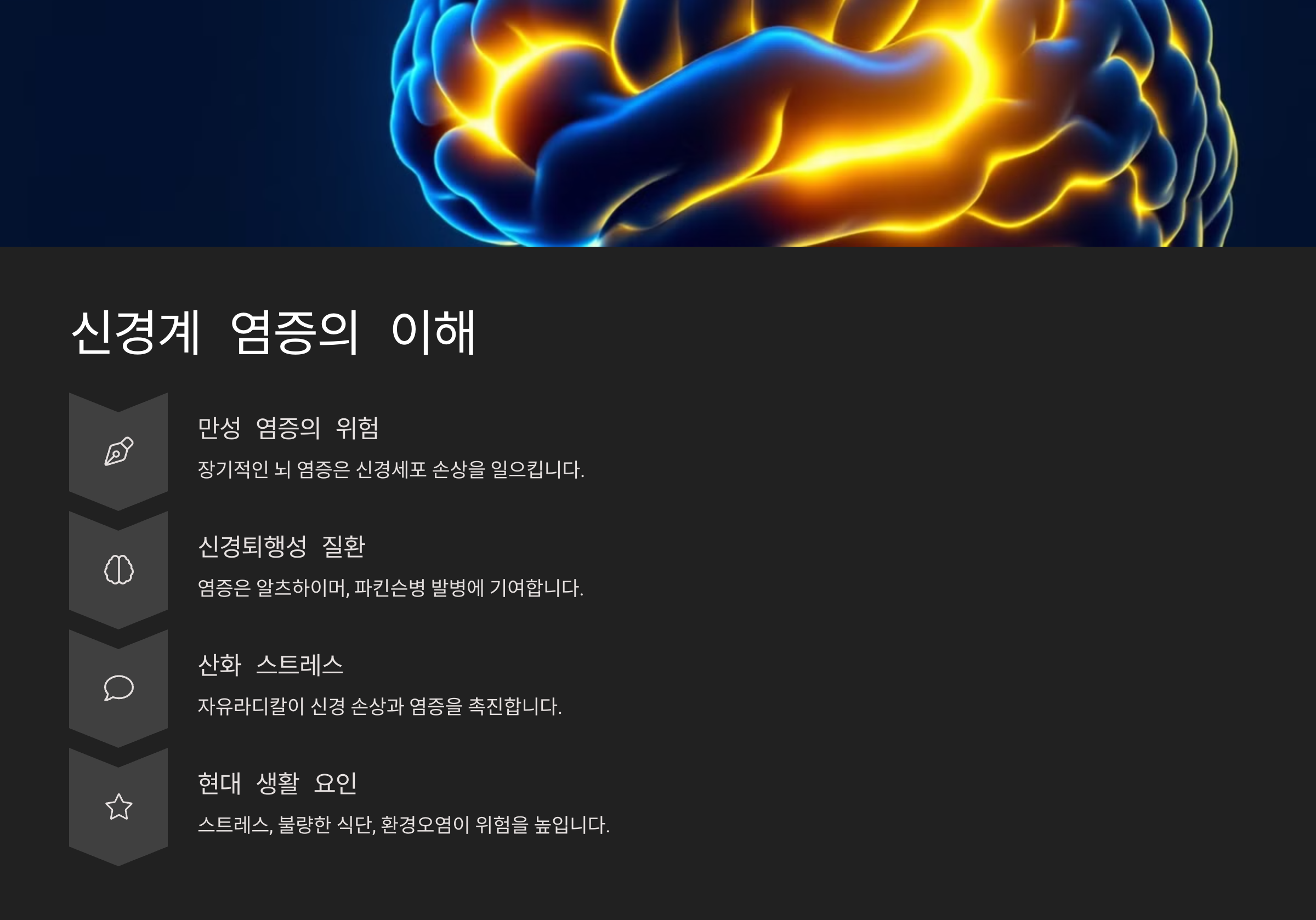 우리 뇌는 민감한 기관이라 아주 미세한 염증에도 쉽게 반응해요. 특히 뇌세포인 뉴런을 둘러싼 교세포(glial cells)에서 발생하는 만성 염증은 신경전달물질 불균형, 세포 손상으로 이어지며 다양한 뇌 질환의 원인이 되기도 해요. 이때 등장하는 게 바로 커큐민이에요!