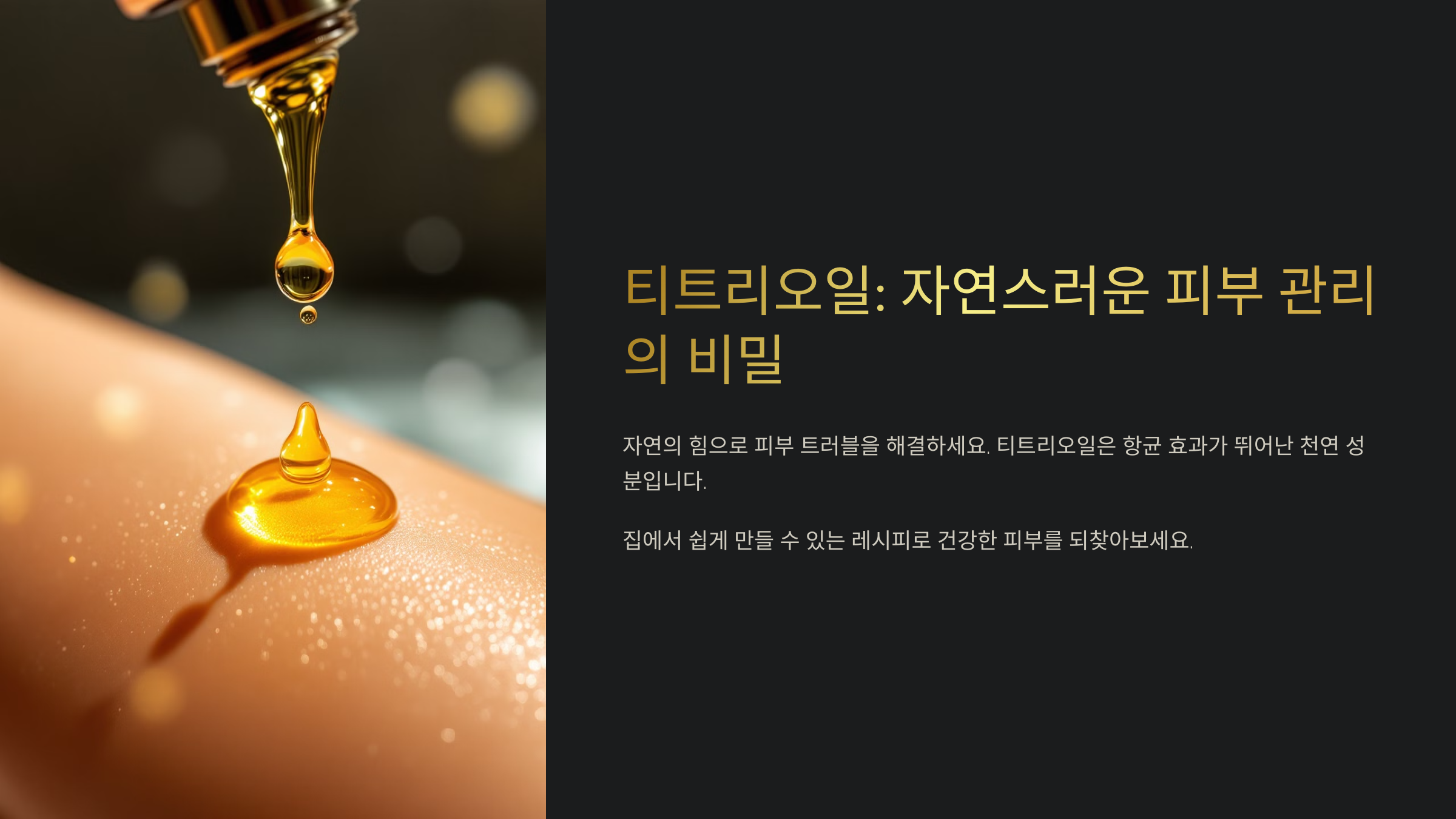 피부 트러블 때문에 고민 중이라면 티트리오일을 활용한 홈케어가 진정한 해결책이 될 수 있어요. 특히 요즘처럼 민감한 계절에는 피부가 쉽게 예민해지는데, 항균과 항염 효과가 뛰어난 티트리오일은 자연에서 온 응급처치 키트 같은 느낌이에요.
