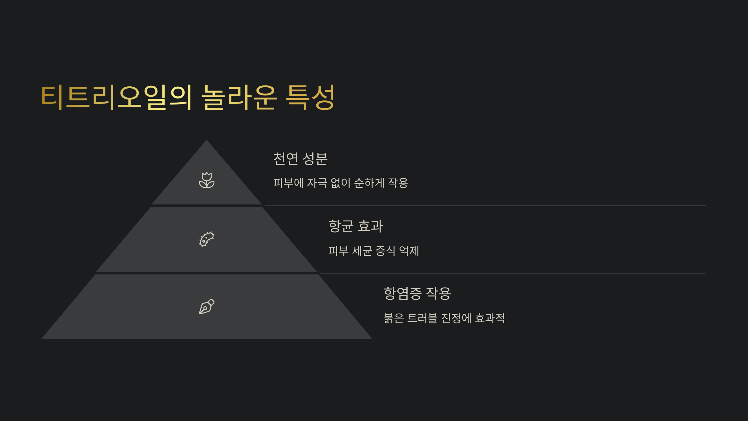 | 티트리오일 | 트러블 예방 | 항균, 항염 효과 |