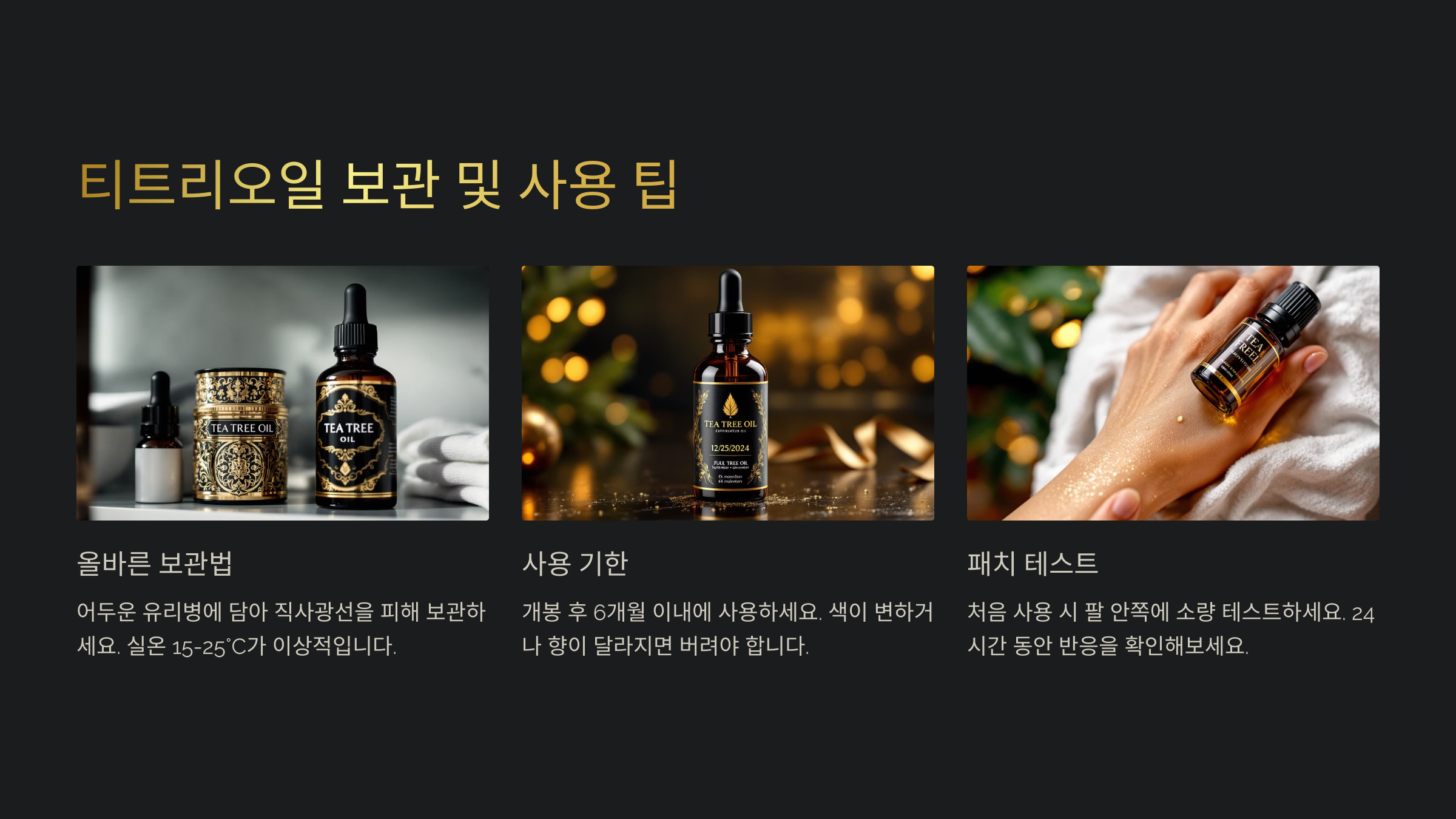 티트리오일 갈색 병 + 냉장 보관 6개월 ~ 1년