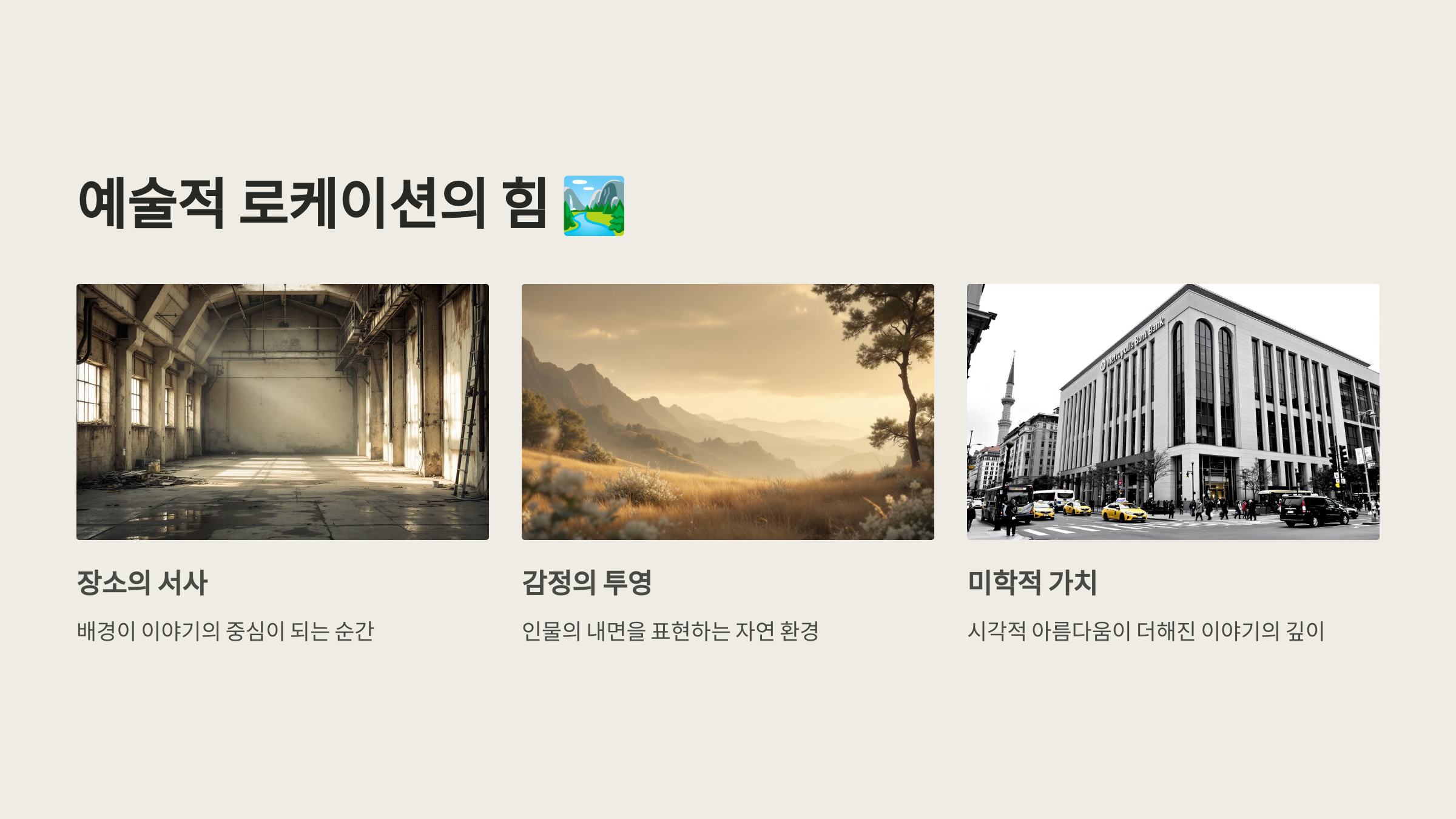 어떤 영화는 이야기보다 풍경에 더 먼저 시선이 꽂히기도 해요. 자연, 도시, 이국적인 장소가 영화의 또 다른 주인공이 되는 거죠.