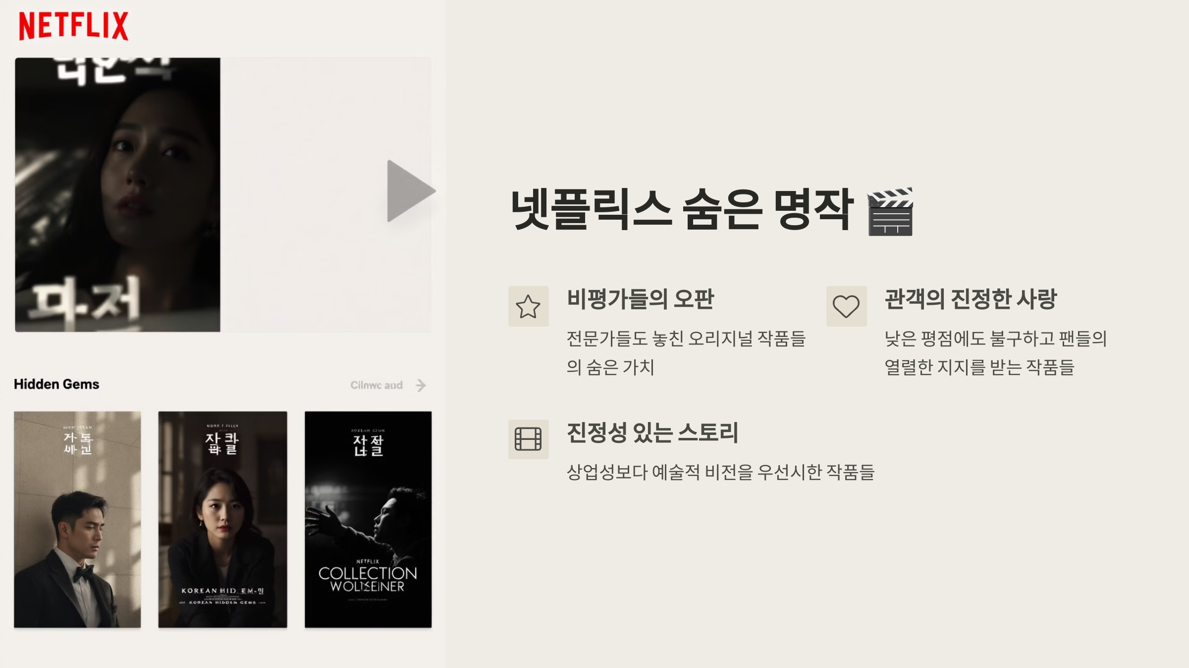 이처럼 넷플릭스에서는 ‘지루해 보이지만 사실은 미친 작품’들이 꽤 많아요. 보다가 끄지 말고 끝까지 보면 다 이해될지도 몰라요.