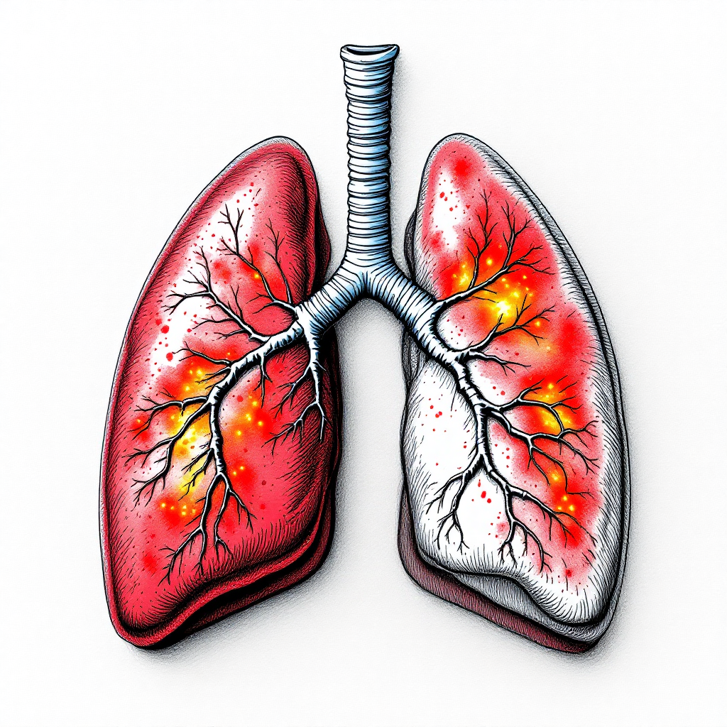 폐렴은 우리 몸의 폐포(공기주머니)에 염증이 생기는 감염성 질환이에요. 폐포는 산소와 이산화탄소를 교환하는 중요한 역할을 하는데, 여기에 염증이 생기면 호흡이 어려워져요. 정상적인 폐포는 공기로 가득 차 있어야 하는데, 폐렴에 걸리면 염증성 분비물이나 고름으로 채워지게 돼요. 이로 인해 산소 공급이 제대로 되지 않아 숨쉬기가 힘들어지고 기침이 심해지죠.