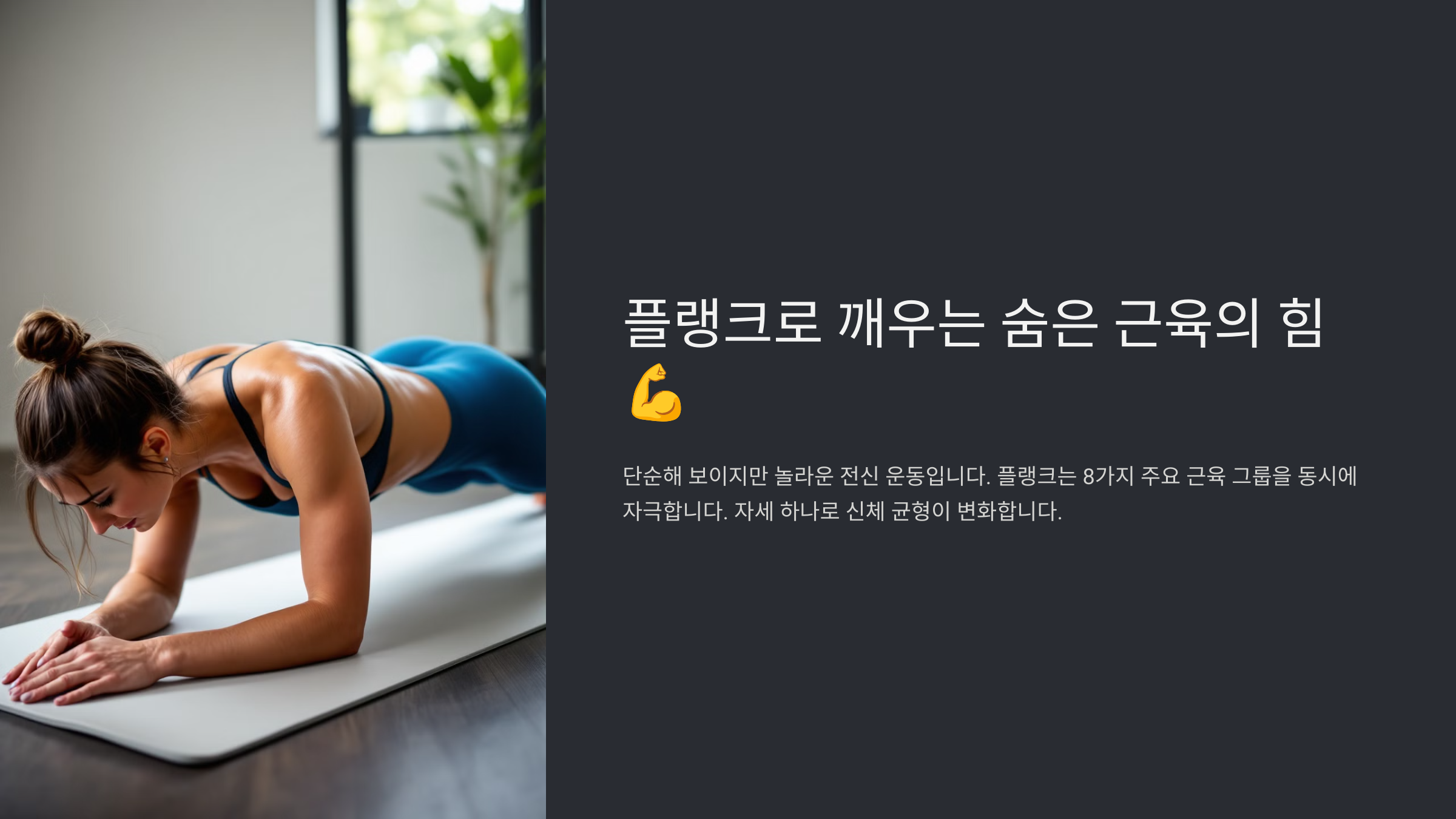 이제 진짜 중요한 부분은 ‘내가 얼마나 숨은 근육을 잘 사용하느냐’라는 거예요. 플랭크는 이 숨은 시스템을 깨우는 최고의 무기랍니다!