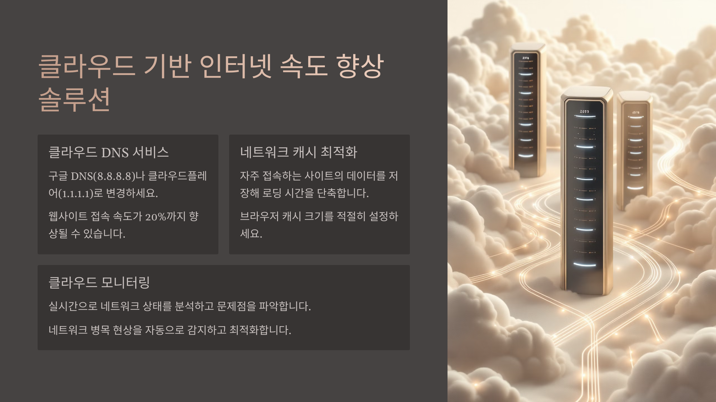적절한 이더넷 케이블을 선택하면 Wi-Fi보다 훨씬 안정적인 인터넷 환경을 만들 수 있어요! 그럼 이제 클라우드 기반 인터넷 속도 향상 솔루션을 알아볼까요? ☁️🚀
