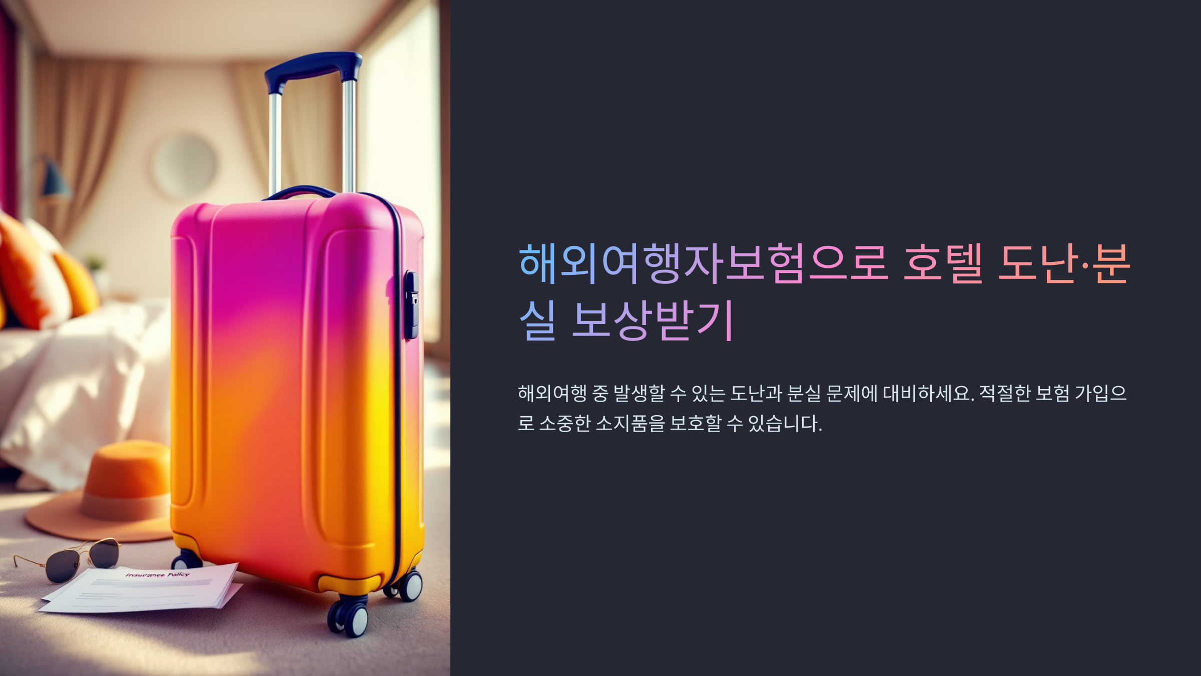 특히 호텔 금고에 보관하지 않은 귀중품은 보상에서 제외될 가능성이 커요. 그러니 귀중품은 꼭 금고에 보관하거나 프런트 데스크에 맡기는 것이 좋아요. 보험사에 따라 세부 보상 기준이 다를 수 있으니 출국 전에 약관을 꼭 확인해 보세요! 🧐