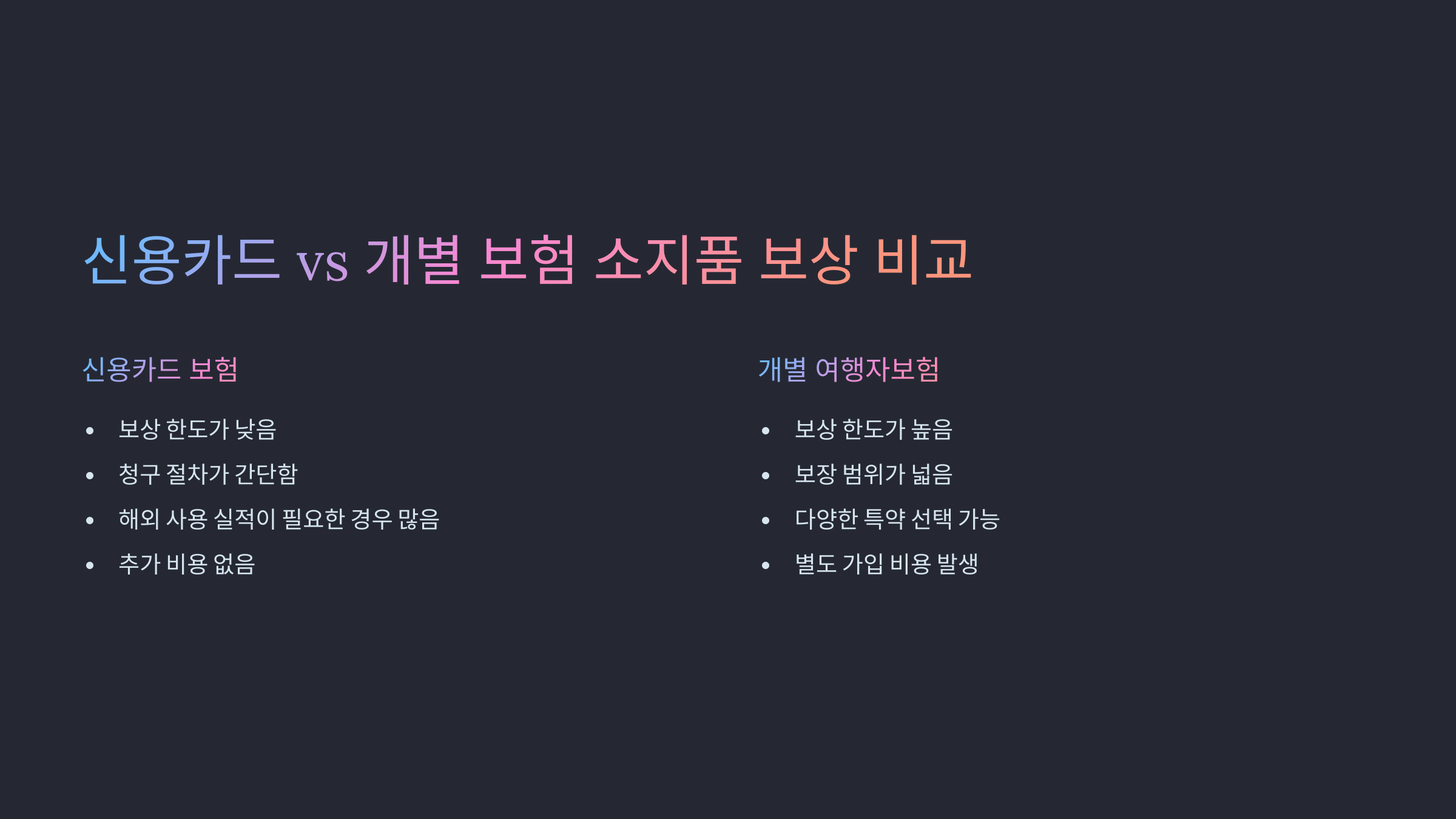 📌 신용카드 vs 개별 여행자보험 비교
