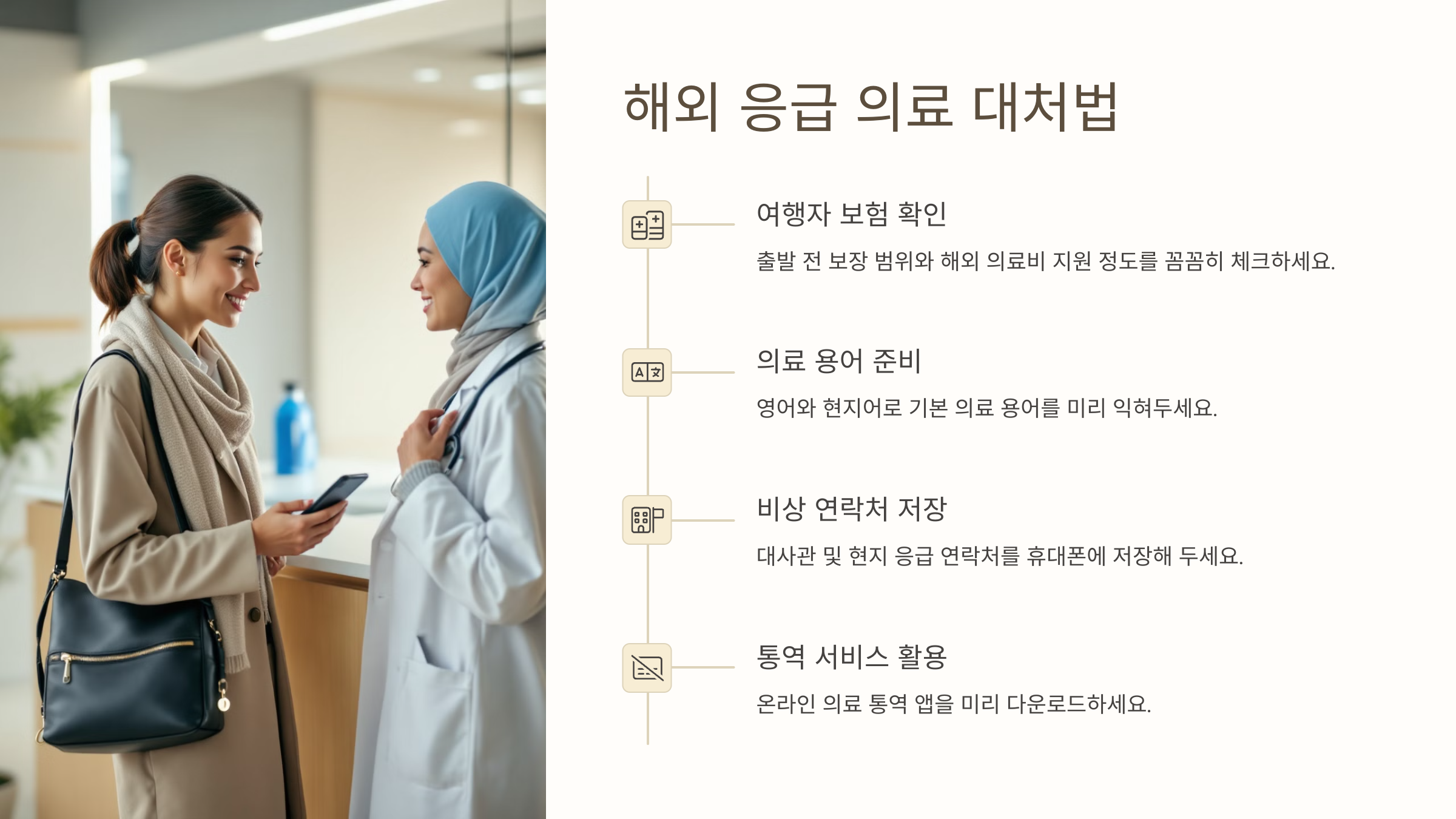 해외에서 갑자기 몸이 아프면 병원을 찾아야 하지만, 언어도 다르고 시스템도 달라서 당황할 수 있어요. 미리 준비하면 당황하지 않고 대처할 수 있어요! 🌍