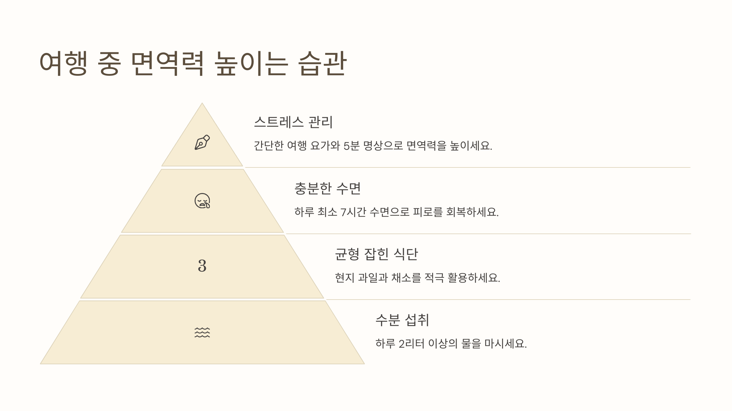여행 중 컨디션을 유지하려면 면역력을 높이는 습관이 중요해요. 충분한 휴식과 위생 관리를 통해 건강한 여행을 즐길 수 있어요! ✨