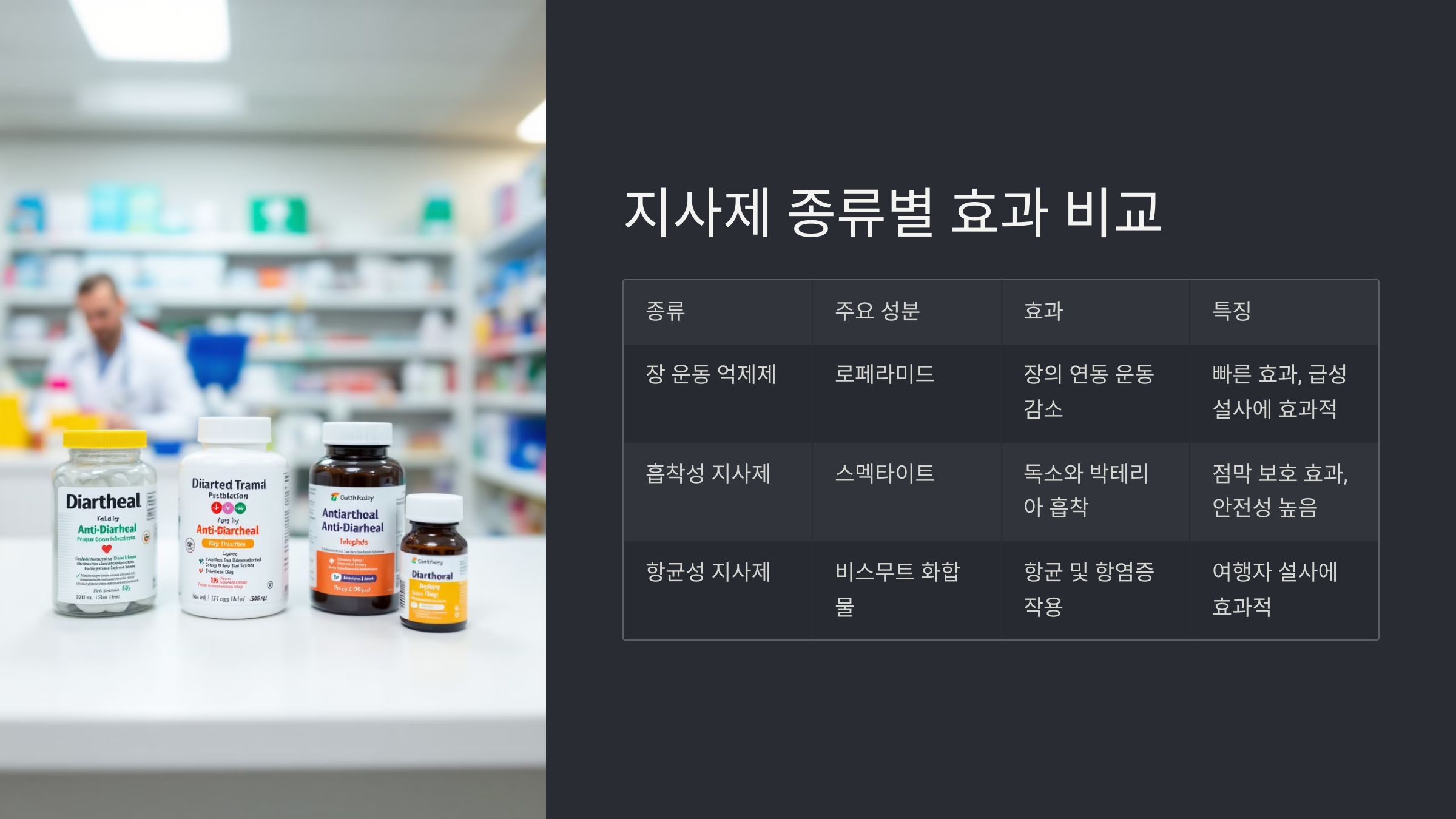 🔍 지사제 종류별 효과 비교