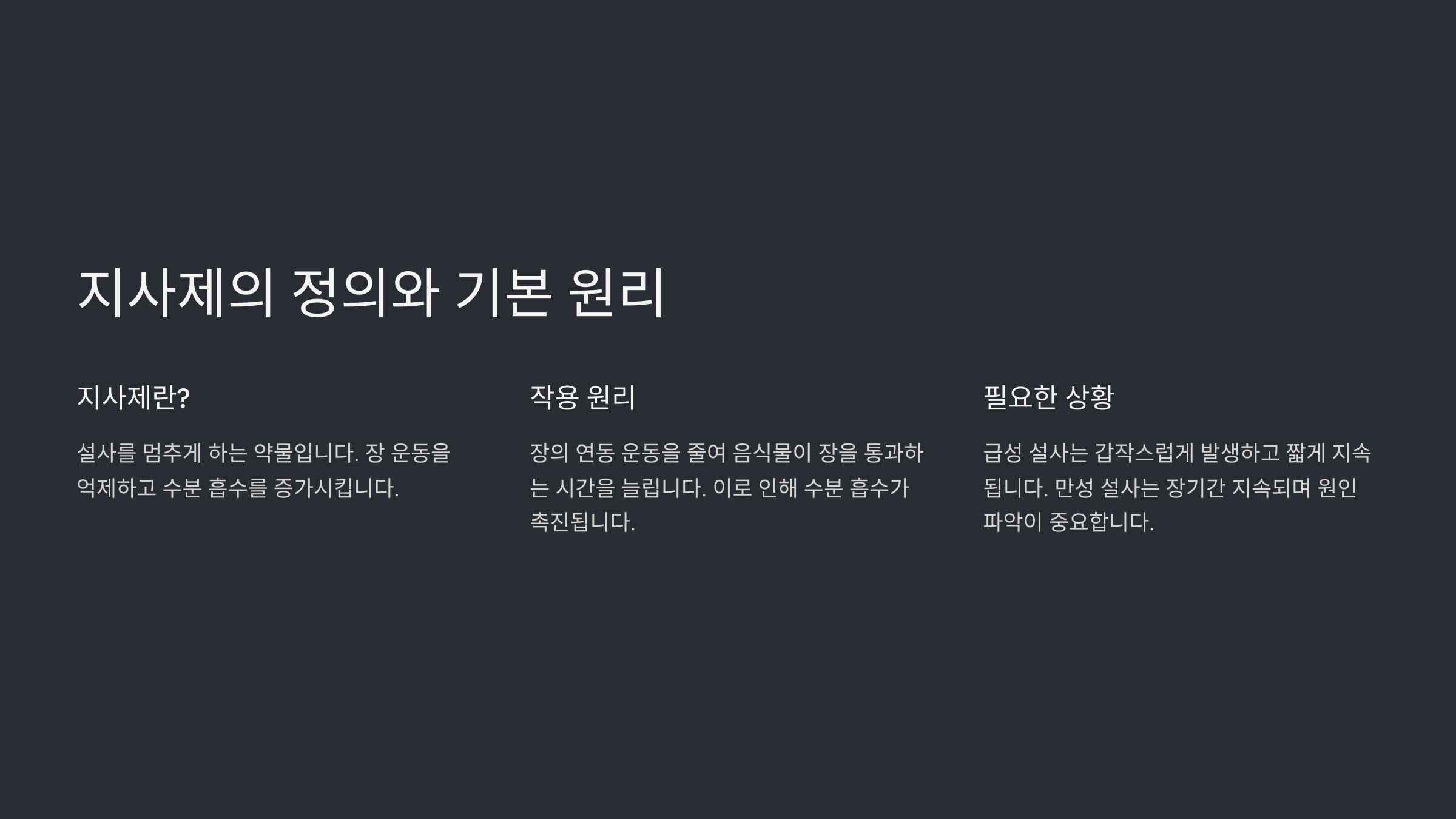 🩺 지사제의 정의와 기본 원리