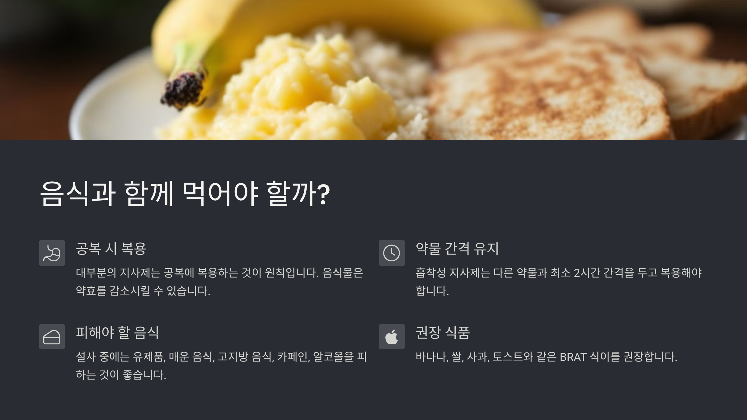 🍎 지사제 복용 시 추천 & 피해야 할 음식
