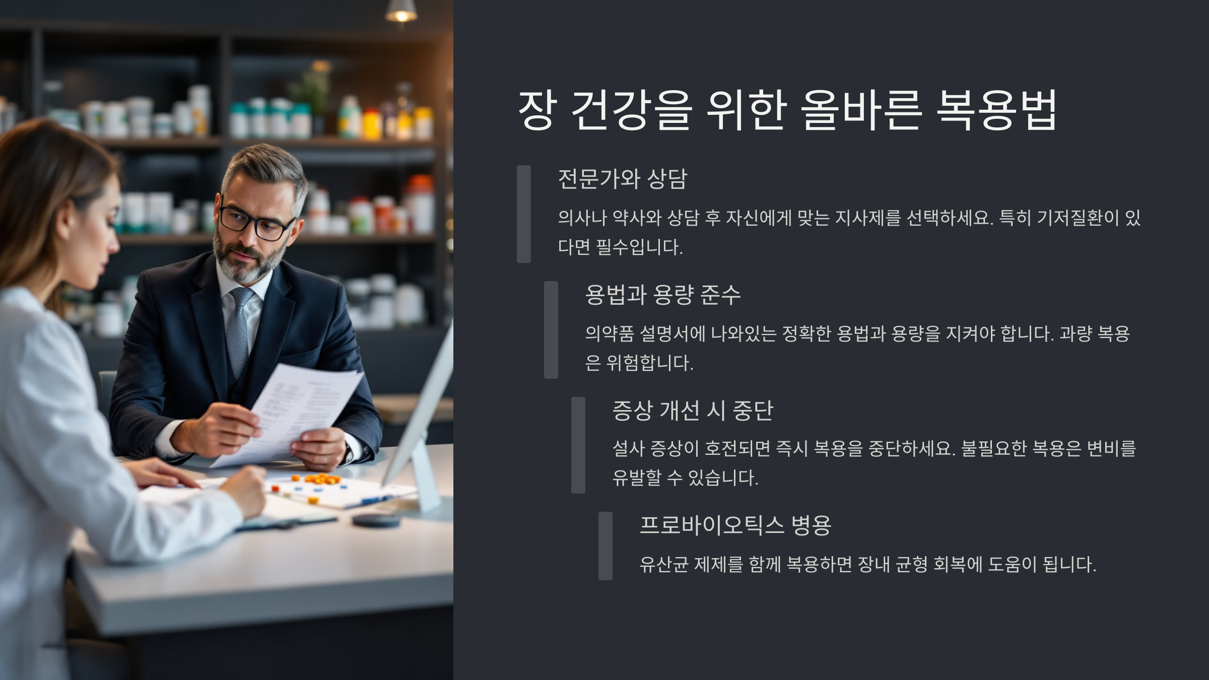 지사제를 올바르게 복용하는 것이 중요해요. 무조건 빠르게 설사를 멈추려 하기보다는 장 건강을 고려하면서 복용해야 해요. 그렇다면 어떤 점을 신경 써야 할까요? 😊