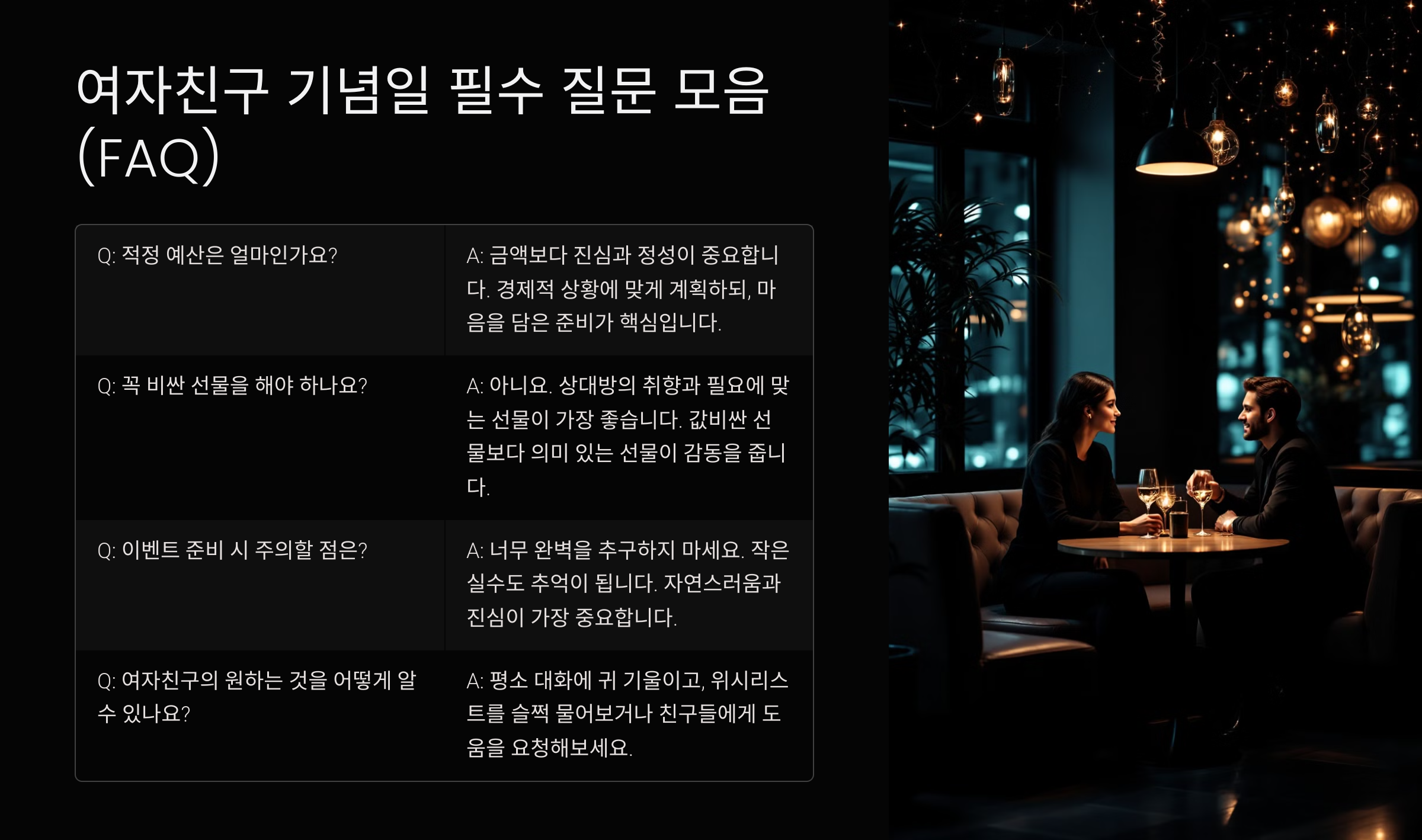 💡 마지막 섹션에서는 여자친구 기념일에 자주 하는 질문들을 정리해볼게요! 💬