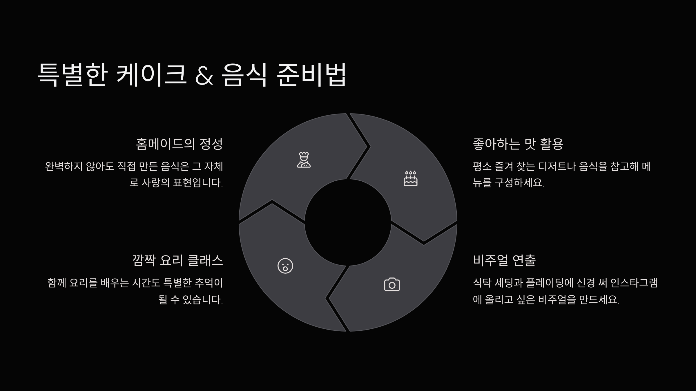💡 다음 섹션에서는 여자친구를 위한 특별한 케이크와 음식 준비법을 알려줄게요! 🍰