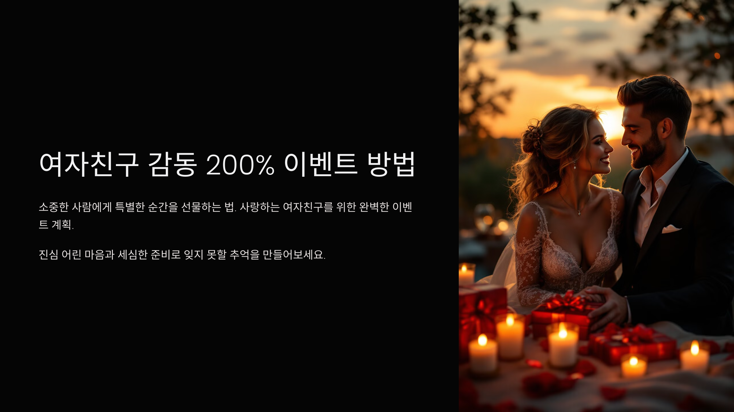 여자친구와의 특별한 날, 단순한 이벤트가 아니라 평생 기억에 남을 감동적인 순간을 만들고 싶다면? 💕 단순한 선물을 넘어 마음이 전해지는 이벤트를 준비해보는 건 어떨까요?