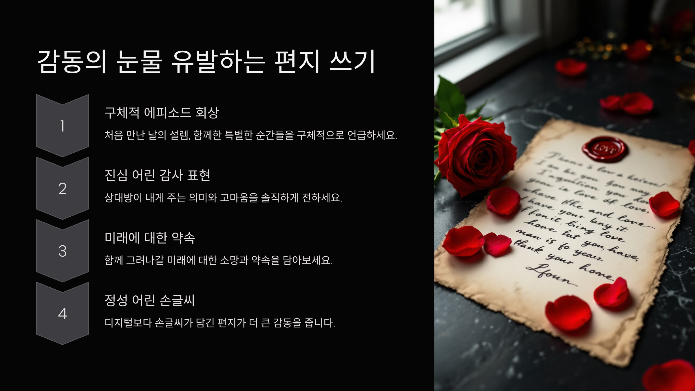 💡 다음 섹션에서는 감동의 눈물을 유발하는 편지 쓰는 방법을 알려줄게요!