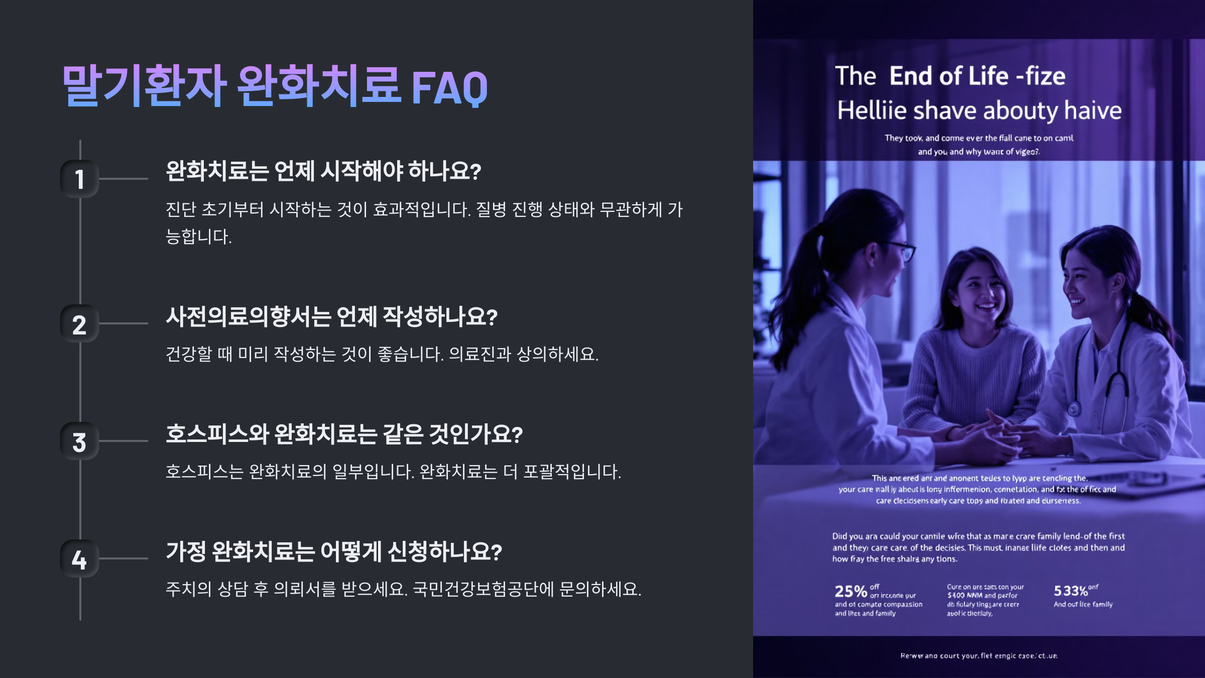 | 🏡 가정 완화치료 | 100~300만 원 | 부분적 건강보험 적용 |