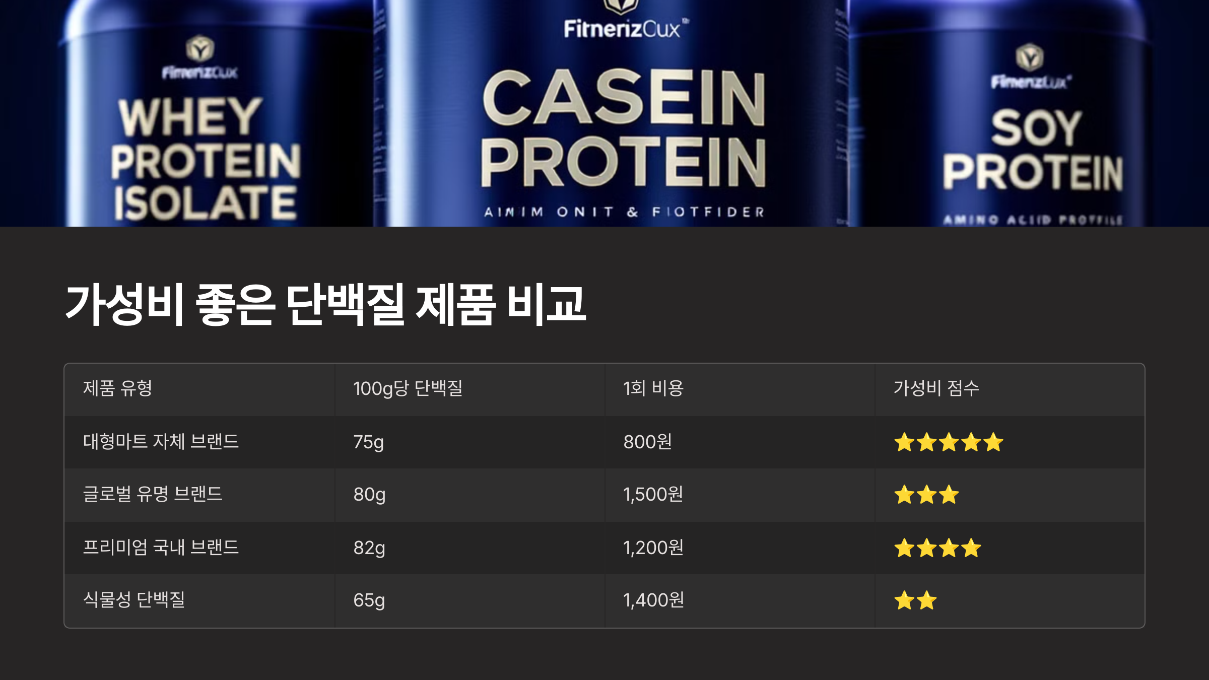 👇 이제 가성비 좋은 단백질 제품들을 비교해볼까요? 👇